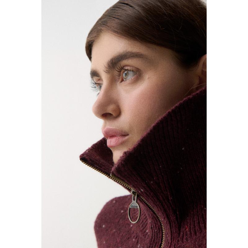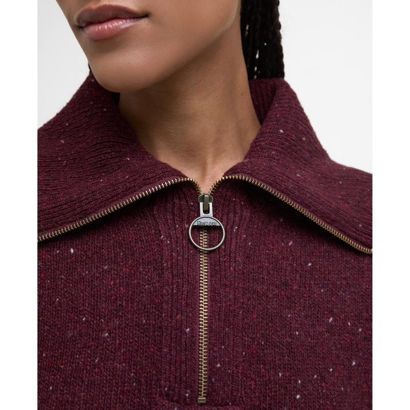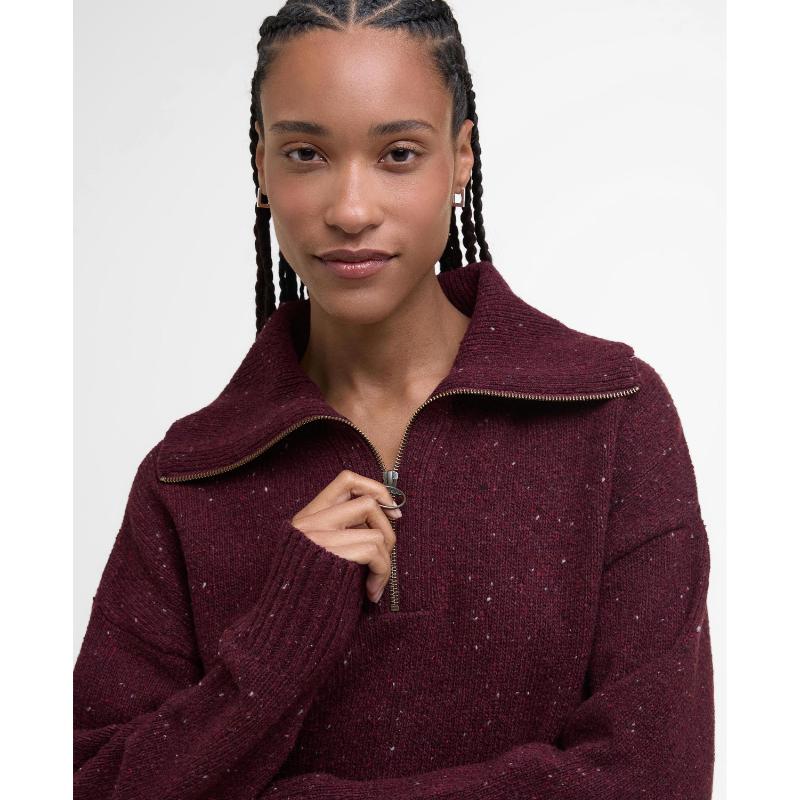 Barbour Lavensdale Half Zip Knitted Ladies Jumper - Black Cherry