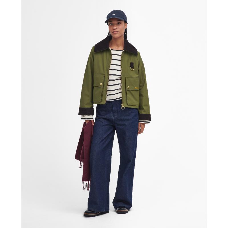 Barbour Nora Casual Ladies Jacket - Dark Moss/Light Sand/Dark Moss