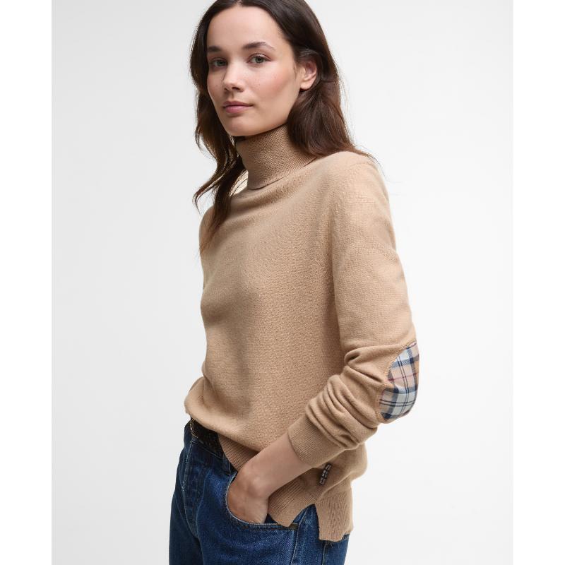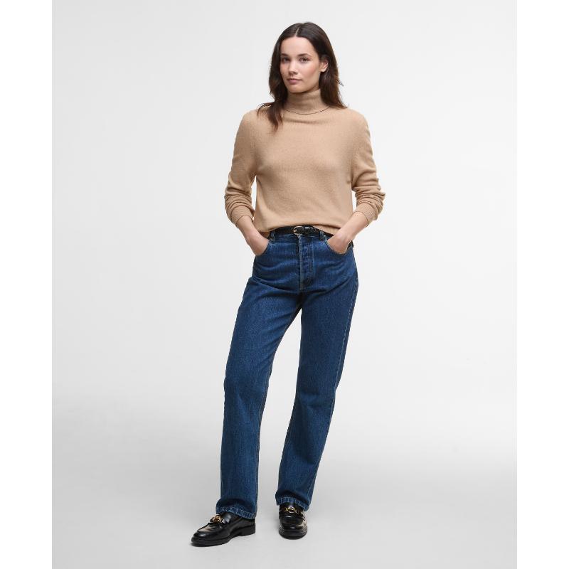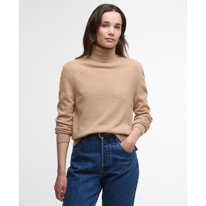 Barbour Pendle Roll Neck Knitted Ladies Jumper - Pale Camel/Hessian