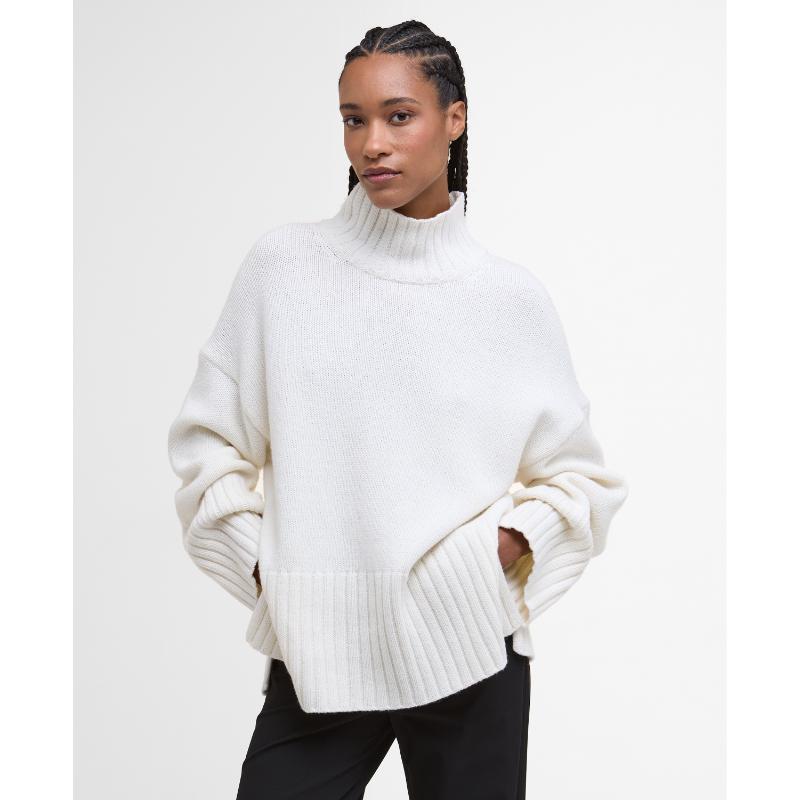 Refresh your knitwear collection with the Barbour Serena Ladies Knitted Jumper. Featuring a classic plain knit and cosy funnel neck, this jumper combines warmth with timeless style. Its relaxed, oversized fit and drop shoulder design ensure comfort and a modern silhouette, while deep rib trims and ribbed back detailing add refined texture. Deep side splits enhance mobility and introduce a contemporary touch. Ideal for layering on chilly days, this versatile jumper suits both casual outings and countryside walks with effortless elegance.