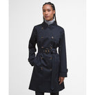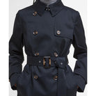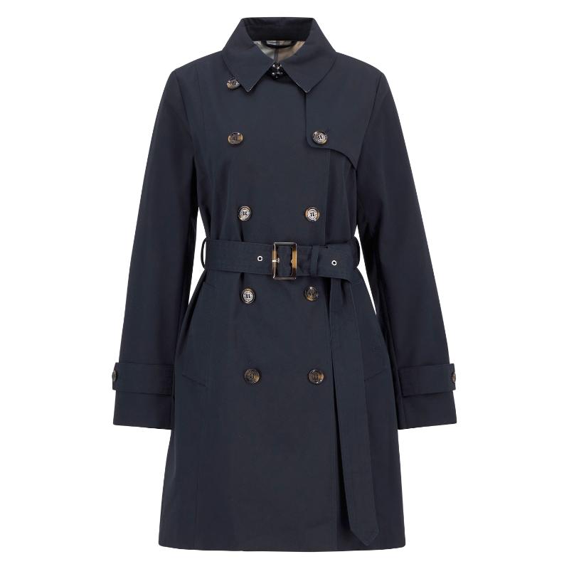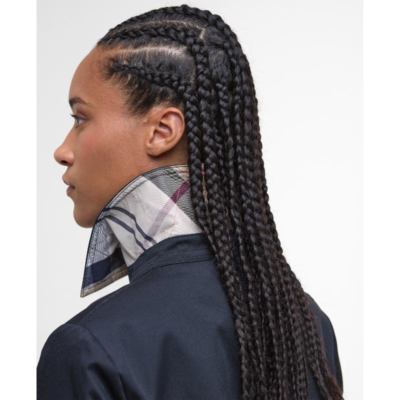 Barbour Short Greta Ladies Showerproof Trench - Dark Navy/Hessian Tartan