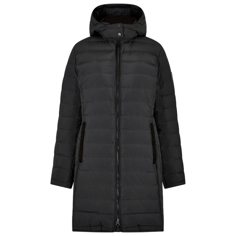 The Ballybrophy Ladies Down Coat is a warm and cosy 3/4 length coat, with lightweight insulation provided by the ethically sourced down and feather fill. The outer shell is crafted from two-layer bonded fabric without the need for stitch rows, giving a smart and smooth textured finish. Featuring a removable hood, two-way YKK front zip, cosy knitted cuffs, zipped handwarmer pockets and faux suede detailing for comfort and style. Complete with subtle Dubarry branding, the Ballybrophy is a must have for the winter months. Machine washable.