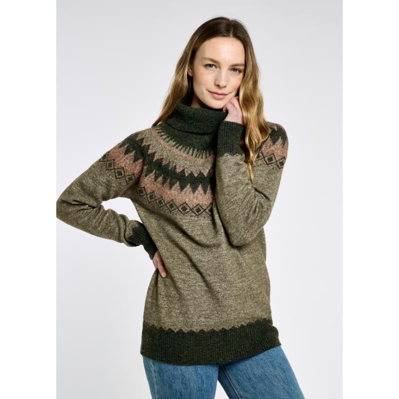 Dubarry Devlin Ladies Fairisle Alpaca Mix Roll Neck Jumper - Olive