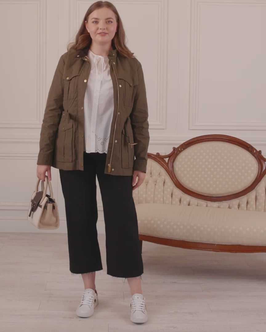 This Fairfax & Favor Sadie Wax Safari Ladies Jacket spring essential is all you need for a timeless look. This Wax Safari jacket is crafted with cotton drill fabric, giving you the perfect balance of classy and and elegantly rugged style. Subtly branded luxurious Fairfax & Favor horn buttons and large front pockets are the perfect finishing touches. With double vents at the back for unbeatable comfort, it's perfect for the most stylish of outings.