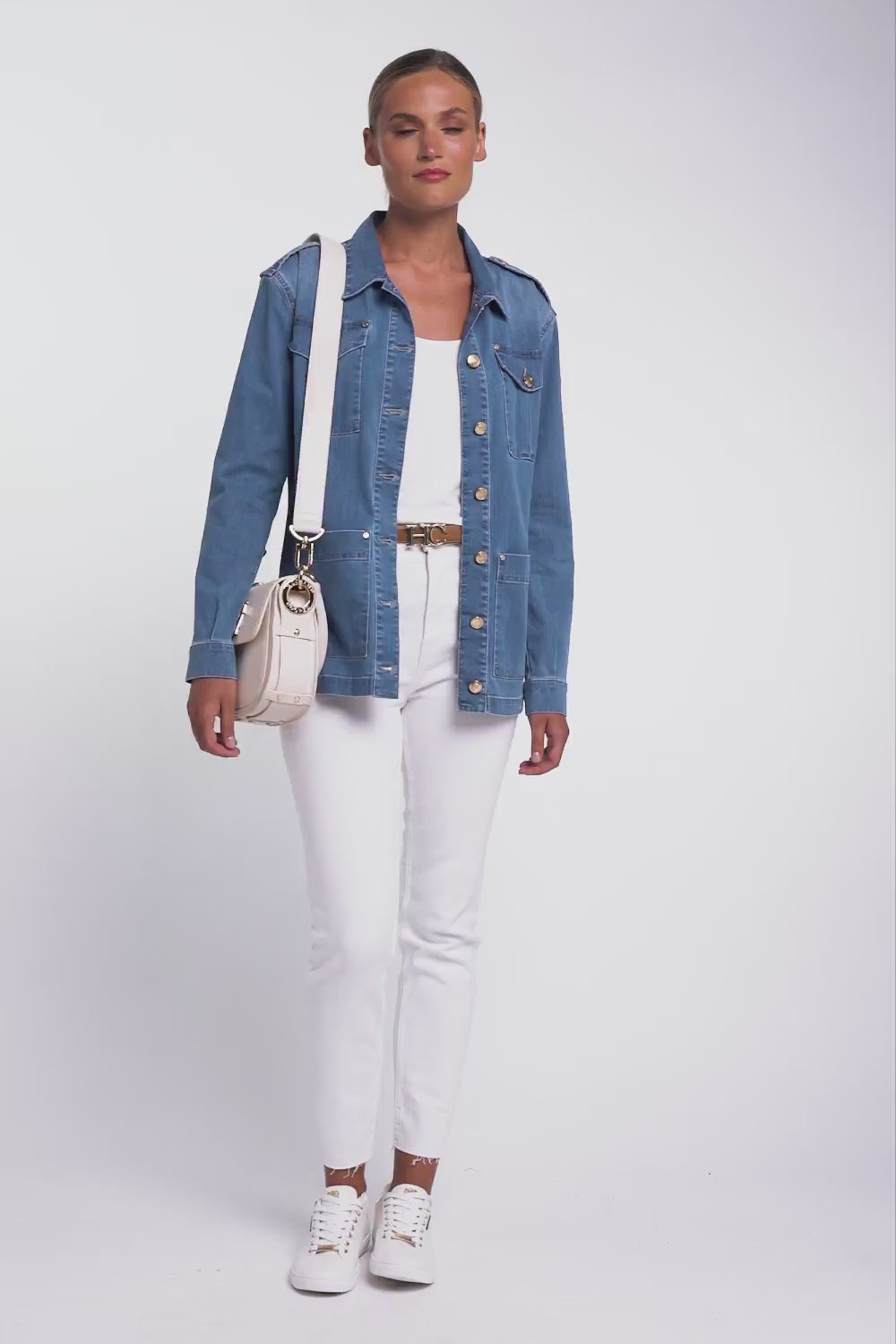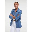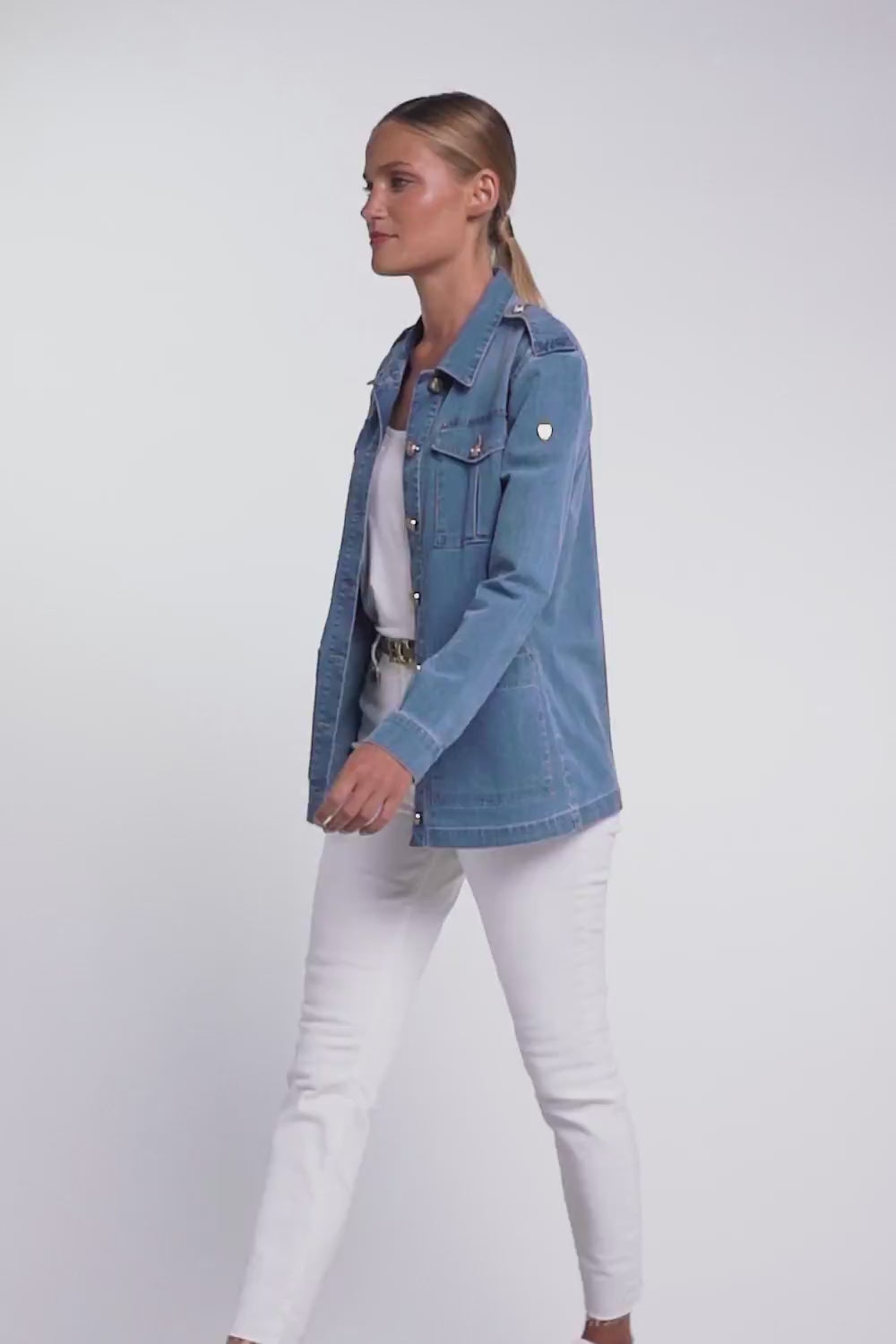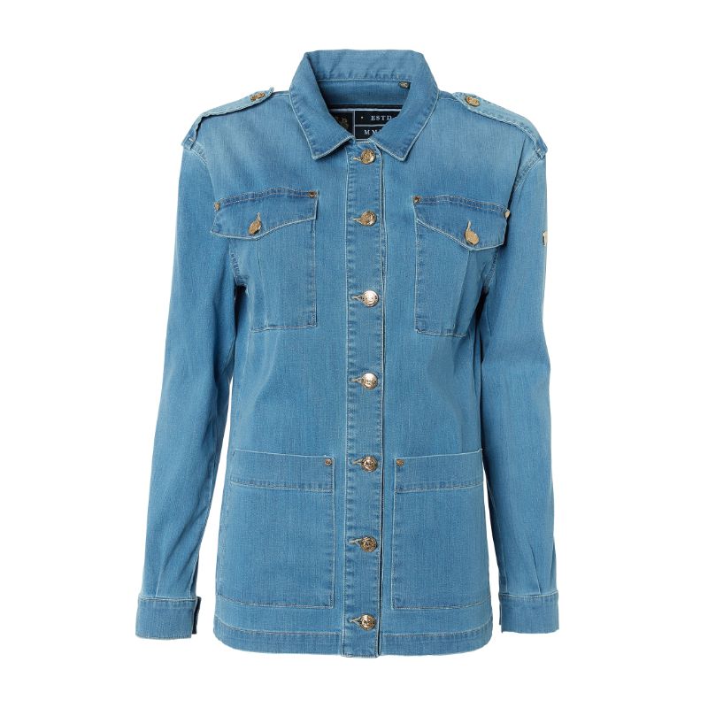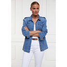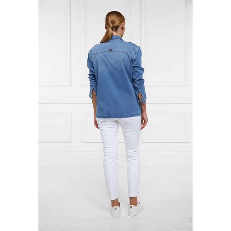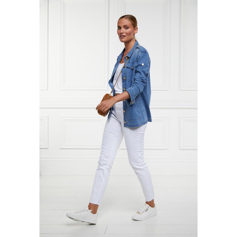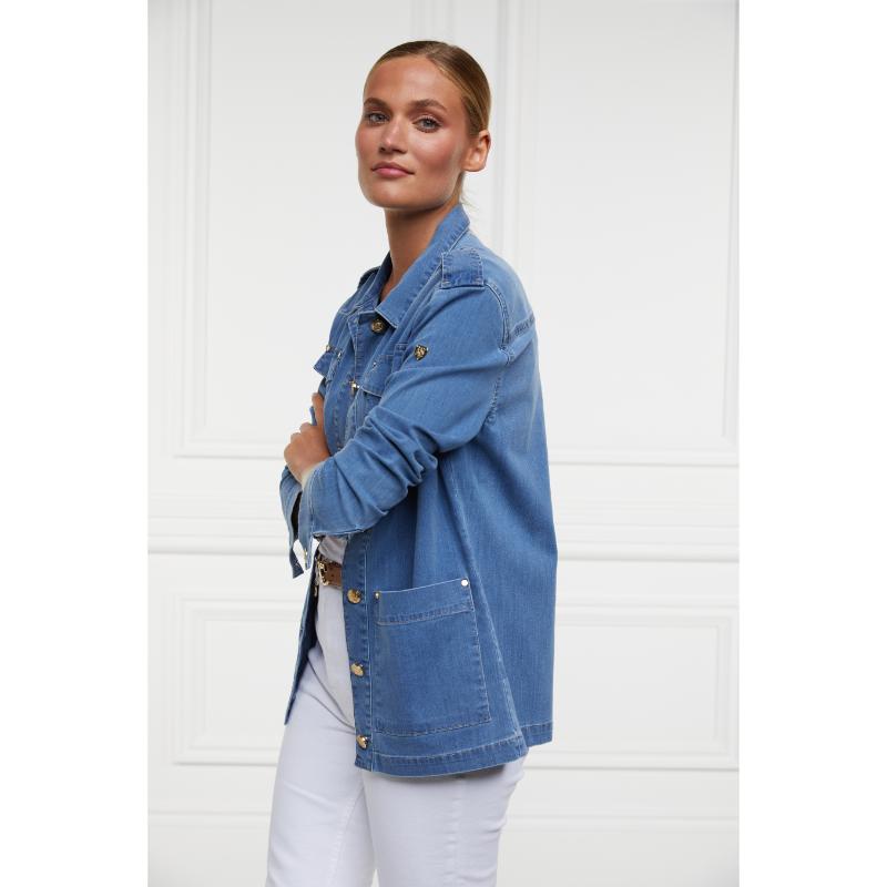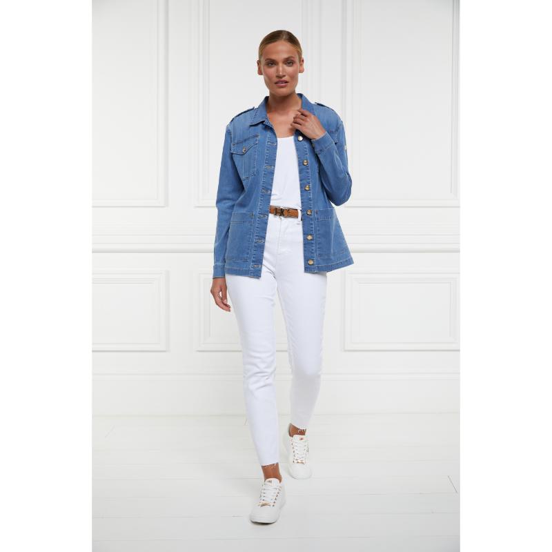 The Holland Cooper Artillery Ladies Jacket is the ideal stylish yet relaxed piece, great for layering and perfectly chic worn open or closed. With strong military inspiration, this jacket can add that bit of edge to a feminine outfit, great paired with skinny jeans or a floaty summer dress. Featuring a four pocket design with classic HC gold hardware, shoulder epaulettes and branded button front closure. Cut in a slightly oversized fit for comfort and versatility.