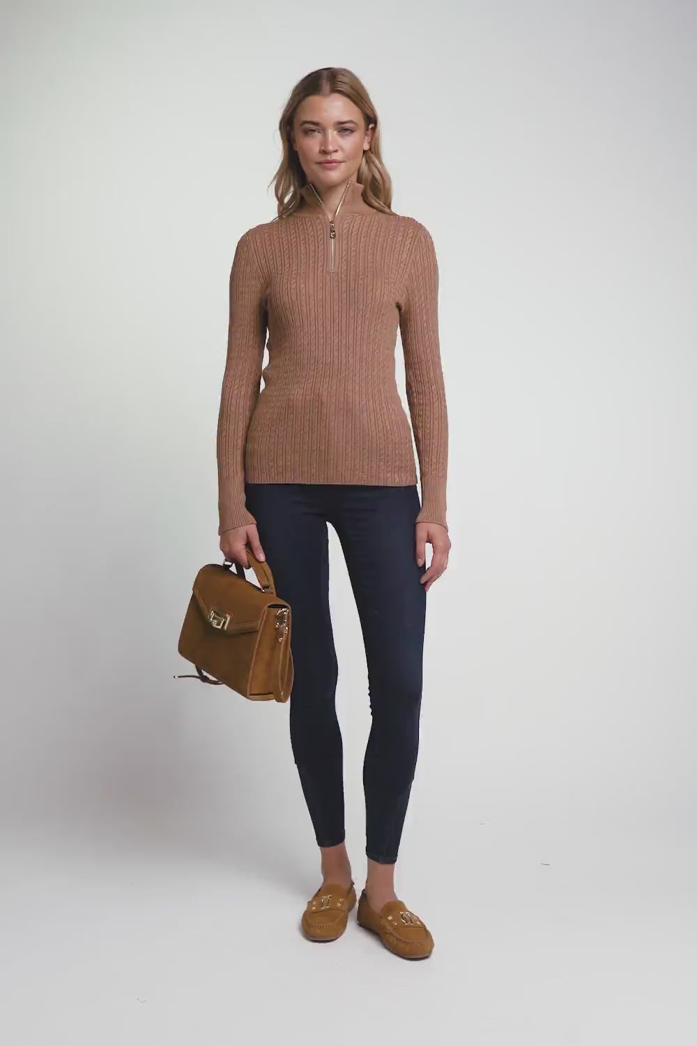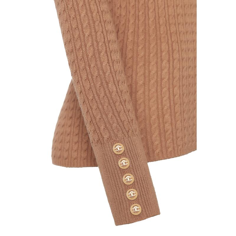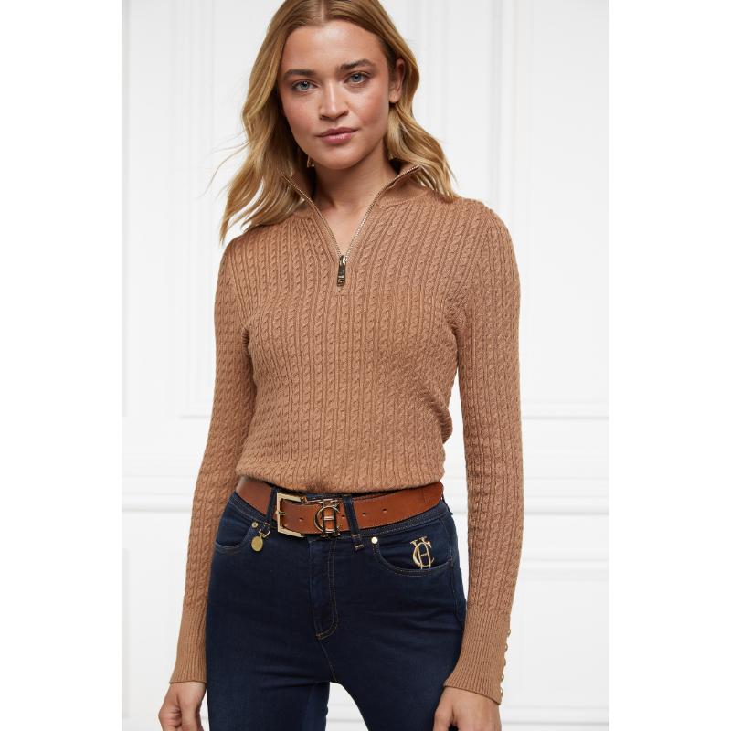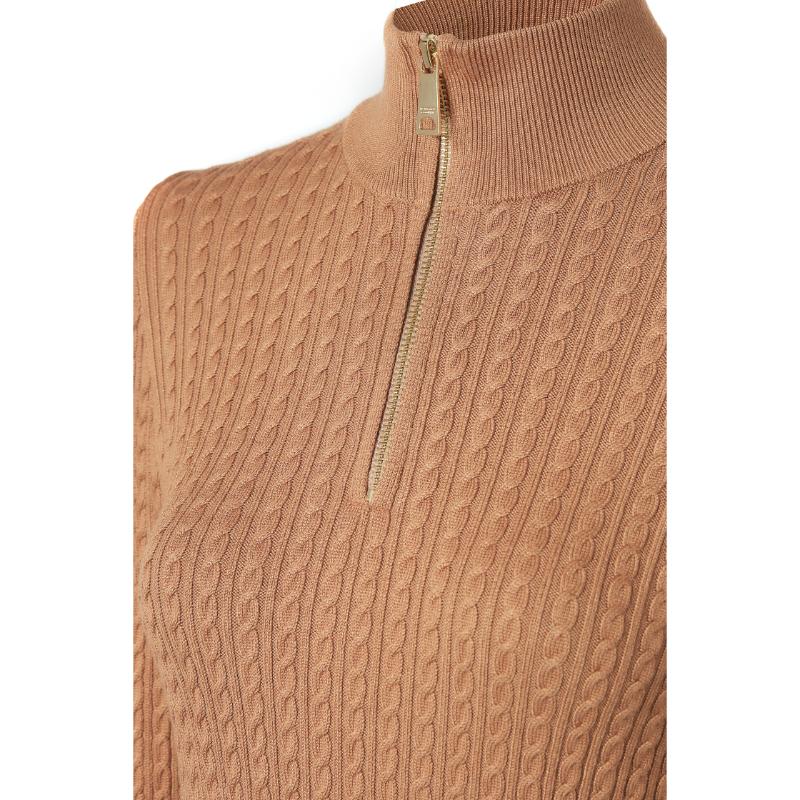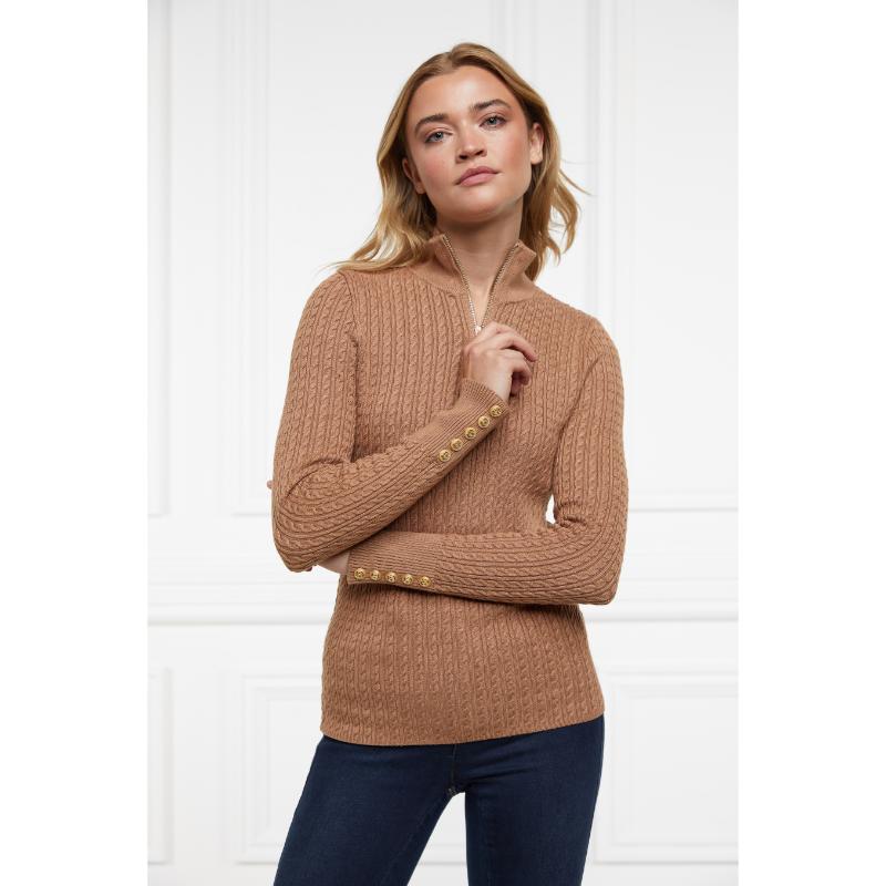 Holland Cooper Ava Ladies 1/4 Zip Knit Jumper - Dark Camel Marl