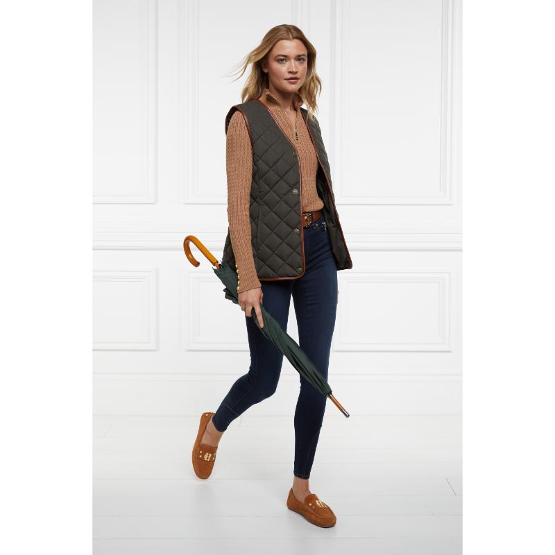 The Holland Cooper Ava Ladies 1/4 Zip Knit Jumper is crafted from luxurious super soft yarn, ensuring a sumptuously cosy feel against your skin. Featuring an intricate cable knit and a slim silhouette, it offers a refined and flattering fit. The monogrammed henley zip provides versatile styling options, while gold hardware on the cuffs adds a touch of sophisticated elegance. This jumper combines expert craftsmanship with timeless design for a polished, comfortable wardrobe essential.