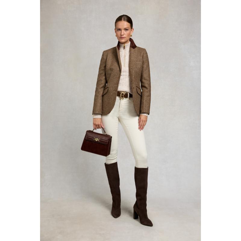 The Holland Cooper Bridget Ladies 1/4 Zip Knit Jumper is expertly crafted from a soft mohair blend, offering both comfort and style. Featuring a quarter zip framed by intricate cabling, its raglan sleeves and slim-fit arms create a sleek, modern silhouette. With subtle hardware at the cuffs and a concealed zipper, this jumper combines refined details and functionality, making it an indispensable layering piece for cooler seasons.