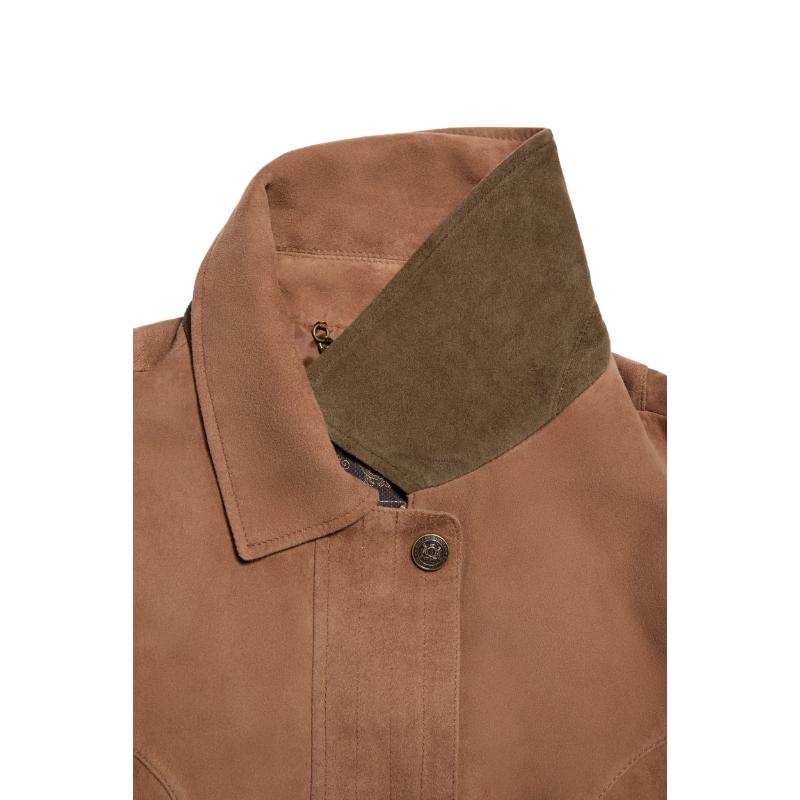 Crafted from premium Kid Suede, the Holland Cooper Country Ladies Suede Jacket exemplifies British luxury. This sophisticated design features antique brass hardware and refined leather collar accents, balancing timeless countryside style with modern detailing. The mid-length cut includes practical upper welt pockets and snap-flap patch pockets for everyday functionality. Finished with a distinctive HC embroidery on the back, this jacket is a mark of true craftsmanship, ideal for effortlessly transitioning between town and country with elegant ease.