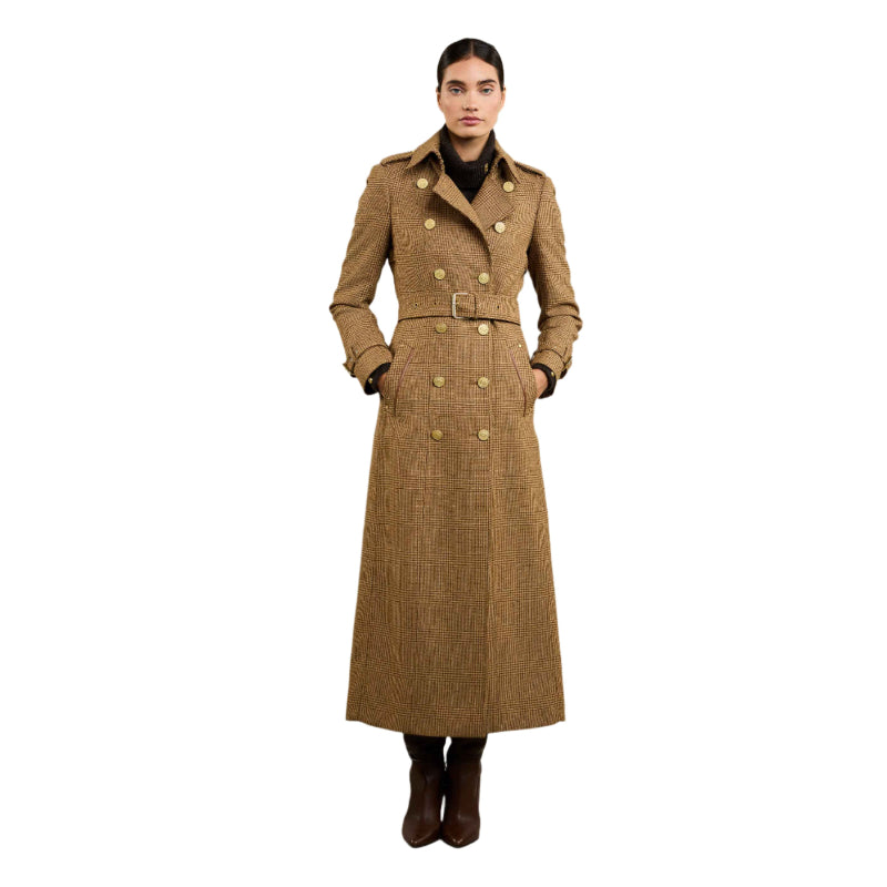 Holland Cooper Full Length Marlborough Ladies Tweed Trench Coat - Tawny