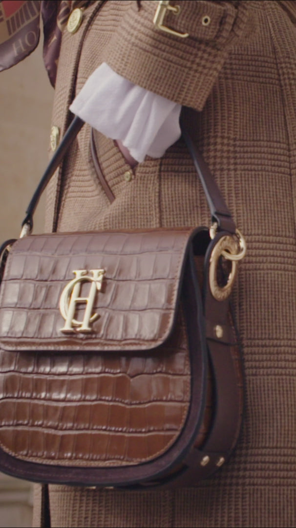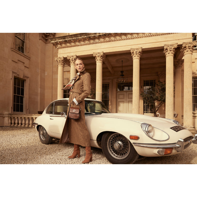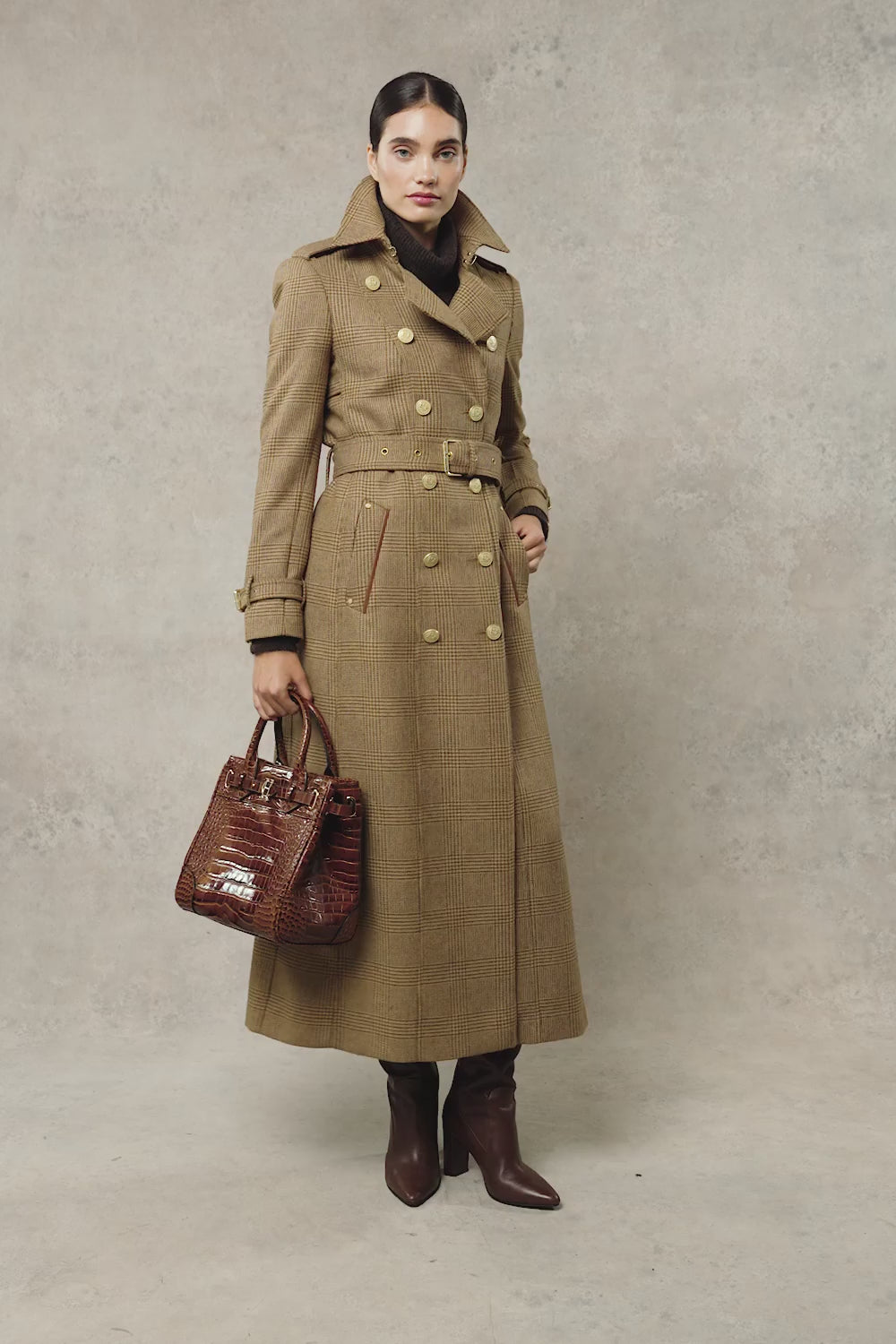 The iconic Holland Cooper Full Length Marlborough Ladies Tweed Trench Coat is a beautifully tailored, double breasted trench coat with an elegant, classic outline. Belted at the waist to create a feminine silhouette, this stylish coat will complete any outfit and is a true investment piece. Crafted by hand from 100% British wool, the classic Herringbone tweed is timeless. Featuring reinforced back yoke, shoulder epaulettes, cuff straps and contrast leather piping. Packed full of delicate details this coat is complete with signature Holland Cooper gold metal hardware.
