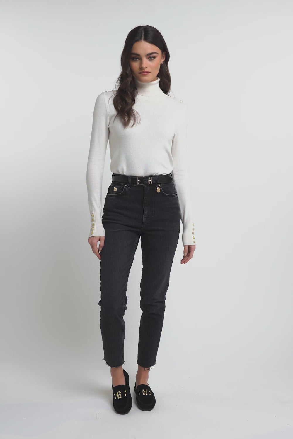 The High Rise Ladies Slim Jeans from Holland Cooper perfectly fit dressed down style, crafted from wonderfully comfortable stretch denim with a raw hem for that laid-back look. Cut with a high waist and slim leg, these would look fabulous paired with a chunky knit and statement belt, finished with five-pocket styling and signature gold hardware.