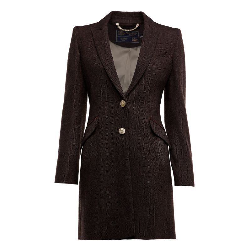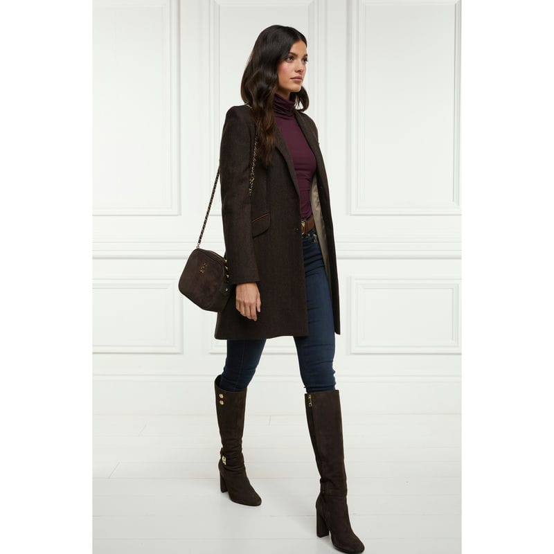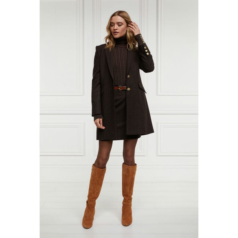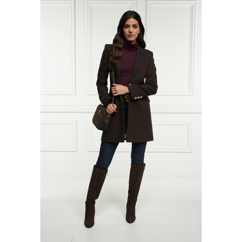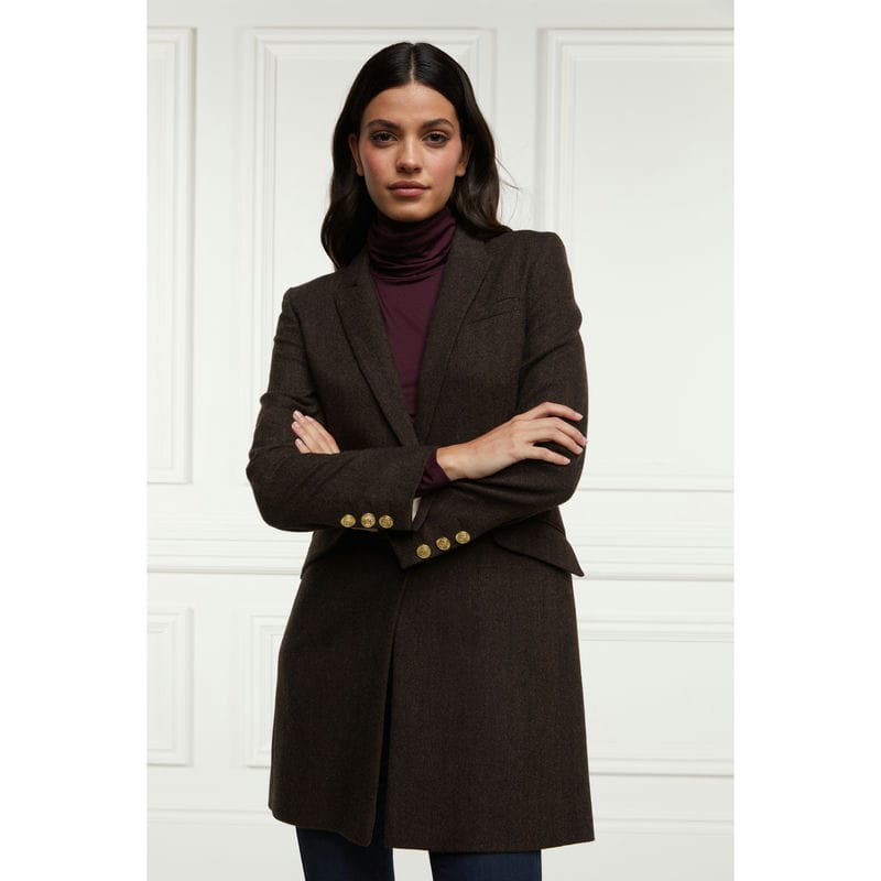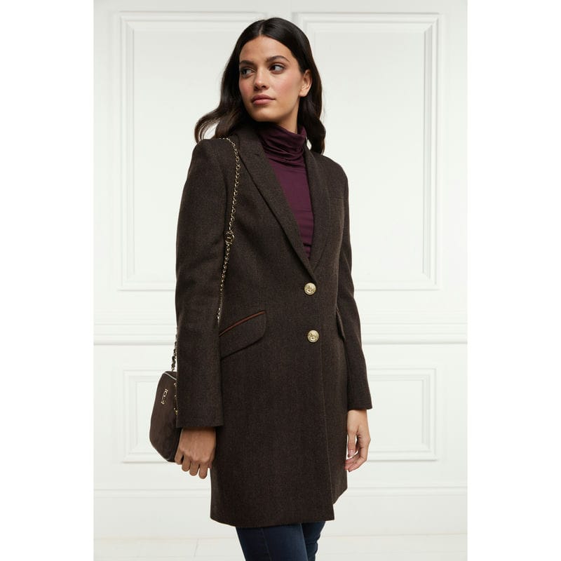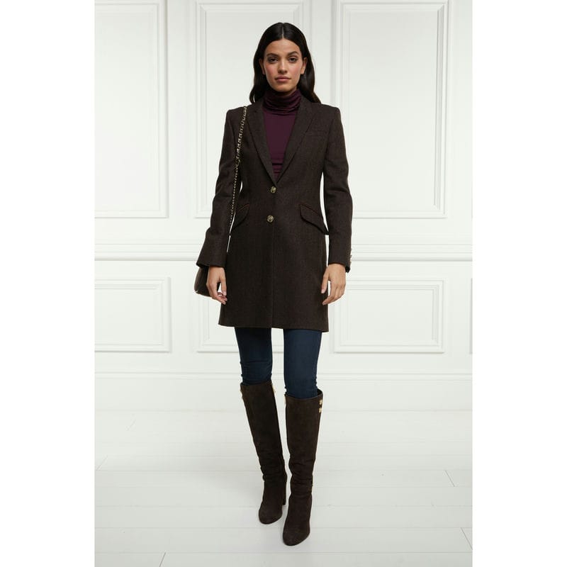Holland Cooper Highgrove Ladies Tweed Coat - Chocolate Herringbone