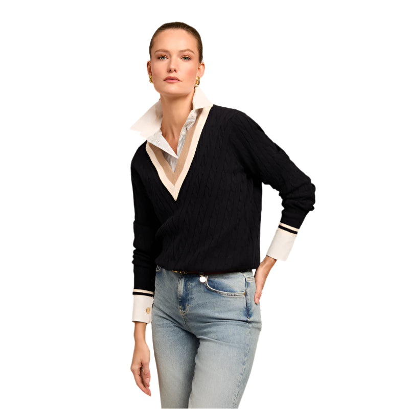 Holland Cooper Melissa Ladies V Neck Knit Jumper - Ink Navy