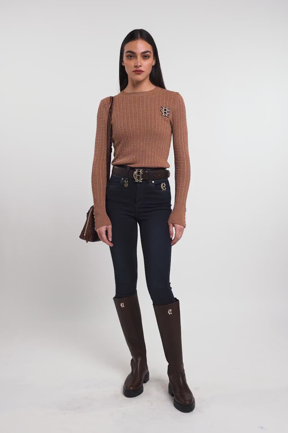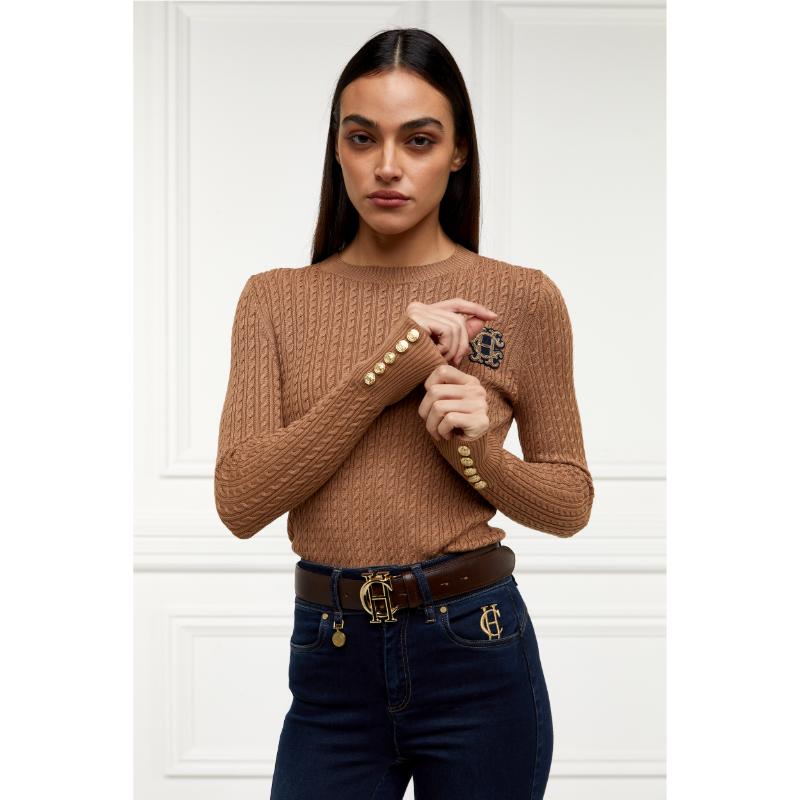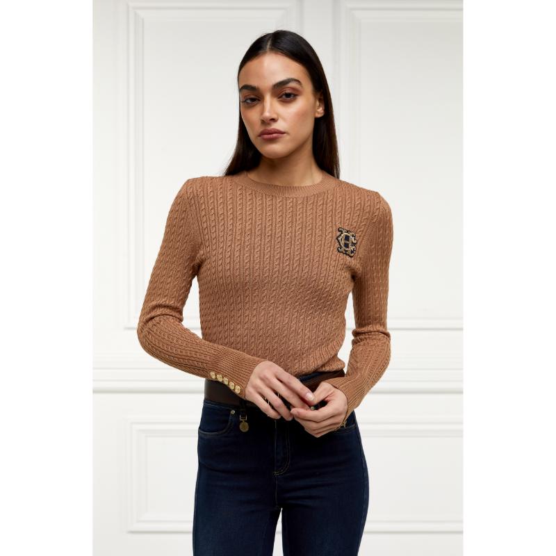 Holland Cooper Princeton Ladies Crew Neck Knit Jumper - Dark Camel