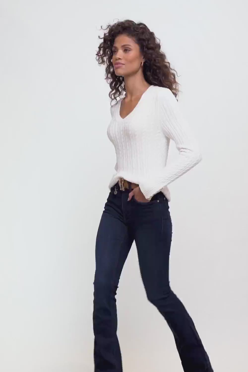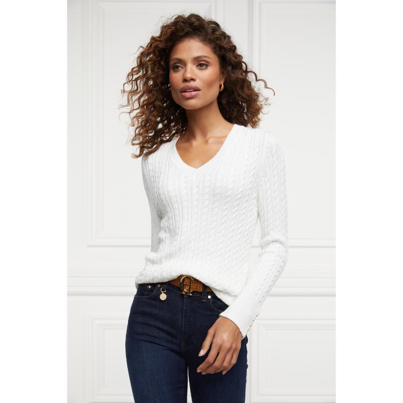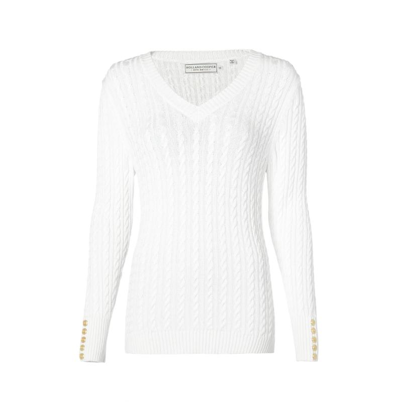 Holland Cooper Seattle V Neck Ladies Knit Jumper - Winter White