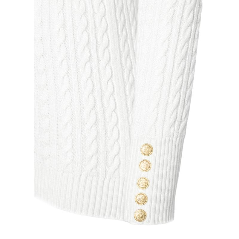 Expertly designed with a slim silhouette and relaxed v-neck, the Holland Cooper Seattle Roll Neck Ladies Cable Knit Jumper is the perfect combination of style and comfort. Made from a soft and lightweight yarn, this jumper features iconic HC hardware on the cuff and shoulders, making it a versatile addition to any wardrobe. Try tucking it into our jodhpur jeans for a chic and effortless look!