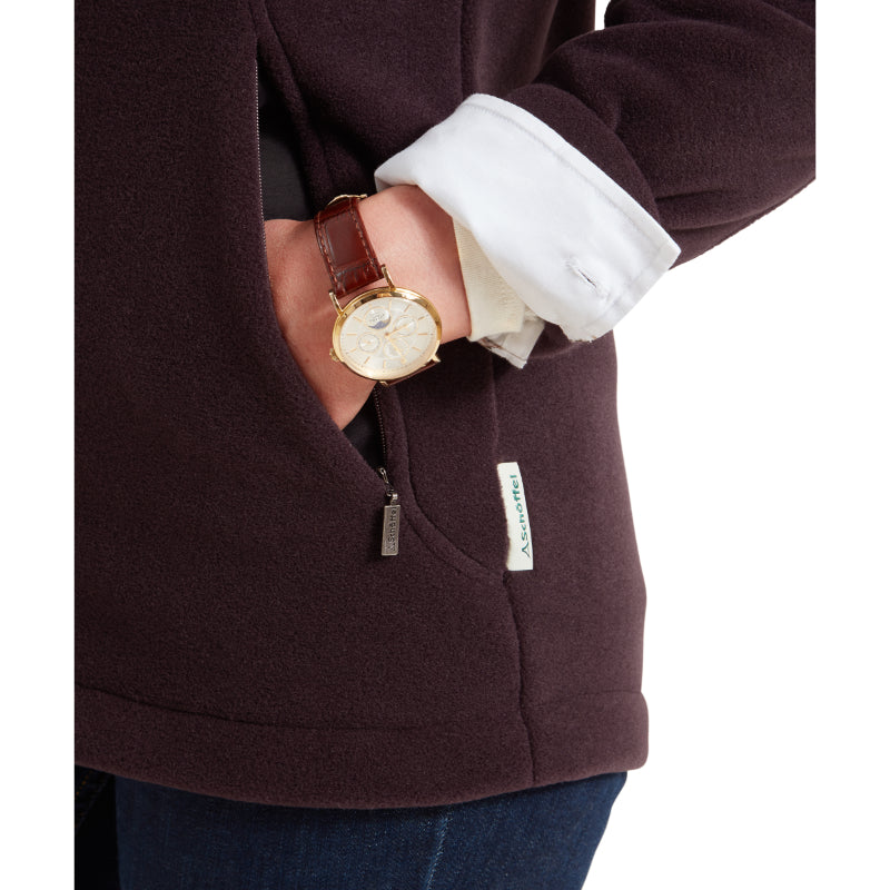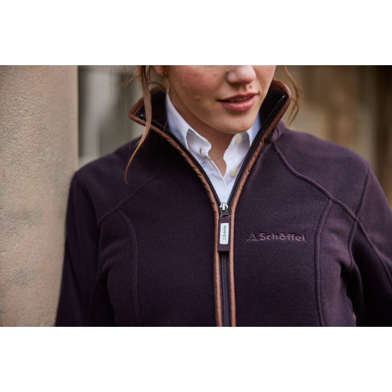 The Schoffel Burley Ladies Fleece Jacket is crafted from their luxury fleece, and is an incredibly useful and popular jacket. It has a concealed front zip trimmed with Alcantara and two front zipped security pockets. Machine washable and quick drying.