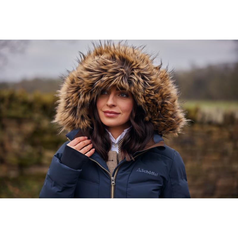 The Schoffel Hurlingham Ladies Venturi Waterproof Down Coat offers exceptional technical performance and elegant style. Its Venturi® fabric ensures 100% waterproofness (20K mm water column), windproofness, and 20K MVTR breathability, while the ethically sourced 600 fill power down (80% down, 20% feathers) provides superior warmth without added bulk. Perfect for any weather, this long coat boasts a flattering silhouette and features a Venturi® 4-way stretch for maximum comfort and storm cuffs designed with thumb holes. Additionally, the coat is water-repellent, PFC-free and features a detachable hood with a lovely removable faux fur trim for a classic look.