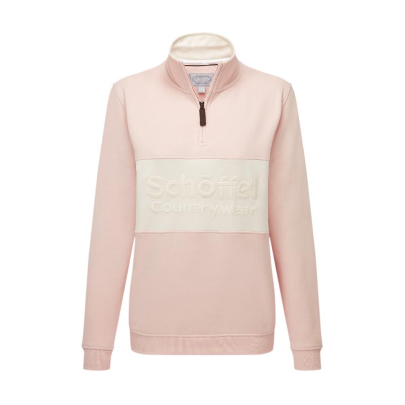 The Schoffel St Agnes Ladies 1/4 Zip Sweatshirt offers a blend of style and comfort. Made with a cotton blend, this sweatshirt boasts a soft jersey material that is both durable and comfortable. This timeless jumper features a classic colour block design and a 1/4 length YKK zipper. It also includes iconic Schöffel elements such as a branded leather zip pull, logo embroidery on the chest, and a branded neck tape.