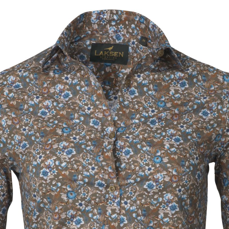 Laksen Birds & Blossom Ladies Cotton Shirt - Olive