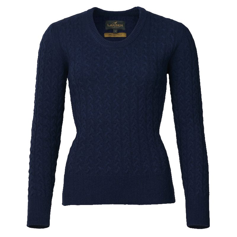 Laksen Burleigh Cable Knit Lambswool Ladies Crew Neck Jumper - Navy