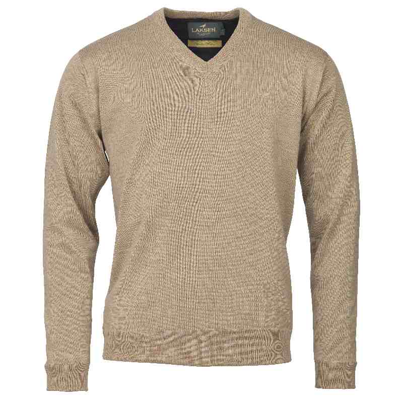 Laksen Grantham Windstopper V-Neck Merino Mens Jumper - Sand