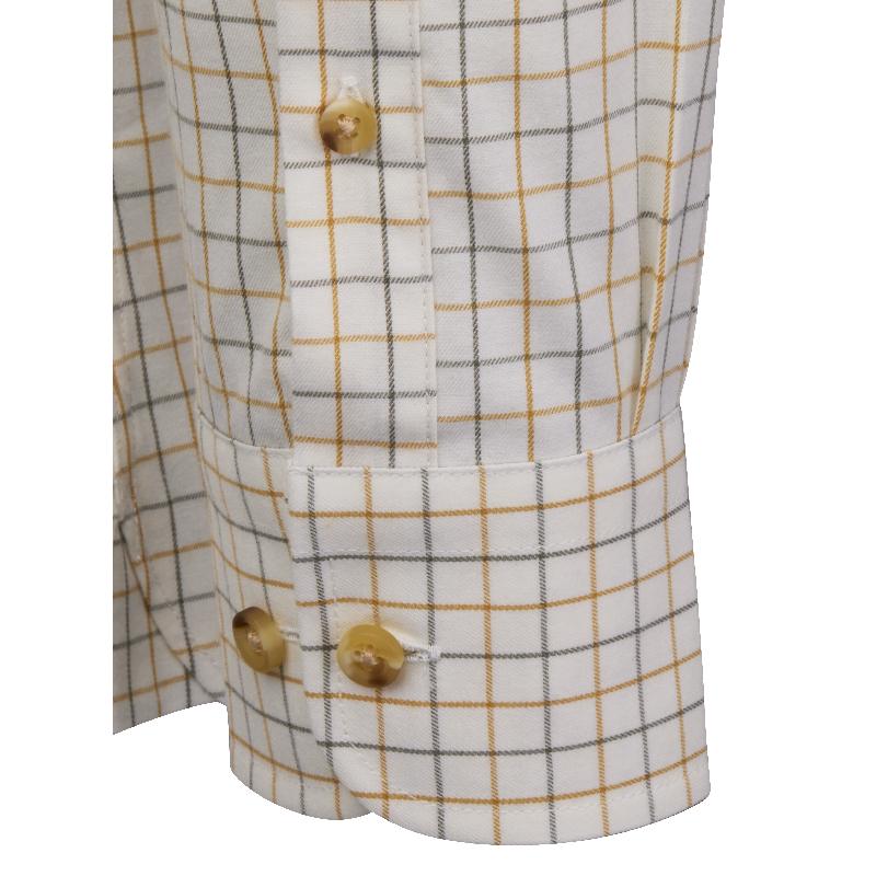 The Laksen Jerrod Mens Shirt combines 85% cotton with 15% wool to deliver a soft and comfortable fabric with excellent durability. Its small tattersall checks create a sophisticated, classic pattern that complements the sporting collar and tailored sporting fit. Designed for practicality and style, this shirt features a single chest pocket on the left and adjustable cuffs that accommodate cufflinks, making it an ideal choice for discerning wearers seeking both performance and elegance.