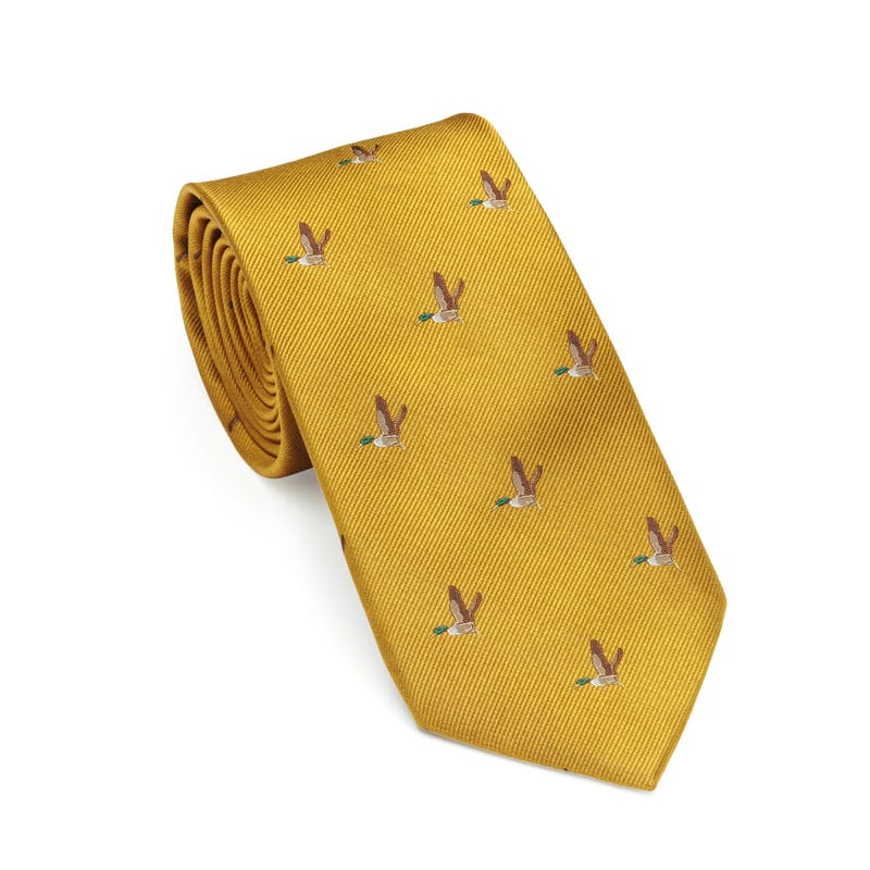 The Laksen Silk Fling Duck Tie is one of the finest quality sporting ties in 100% pure woven silk. Featuring a flying Duck against a contrasting background, they team perfectly with Laksen’s shirt and jumper range.