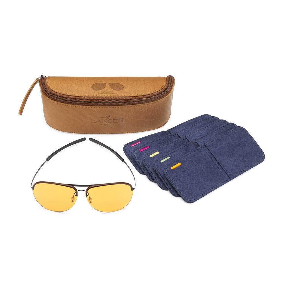 The Sunmaster Dual Lens Shooting Glasses from Laksen are an incredibly innovative modern design of eyewear, that offer the highest standard of safety combined with comfort, performance and style. Meticulously designed and crafted in Denmark, and tested over a two year period with certified shooting instructors, sport and competition shooters and passionate game shooters, Laksen have created what they describe as the "optimum performance shooting glasses". These glasses are incredibly lightweight, weighing only 18 grams complete with lenses, and feature a highly flexible frame that is crafted from a single piece of matte black stainless steel, with no hinges, screws or welding. They can comfortably be worn with all ear defenders, come complete with a set of 5 coloured lenses for shooting in different light conditions and meet safety standards of both EN166 and ANSI Z87.1 impact approval.