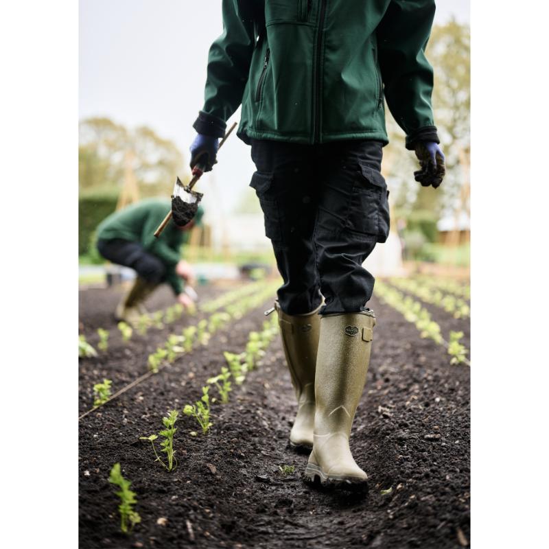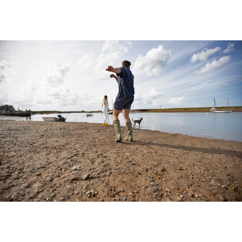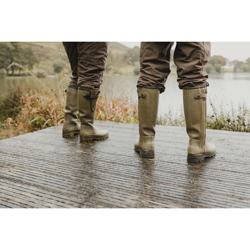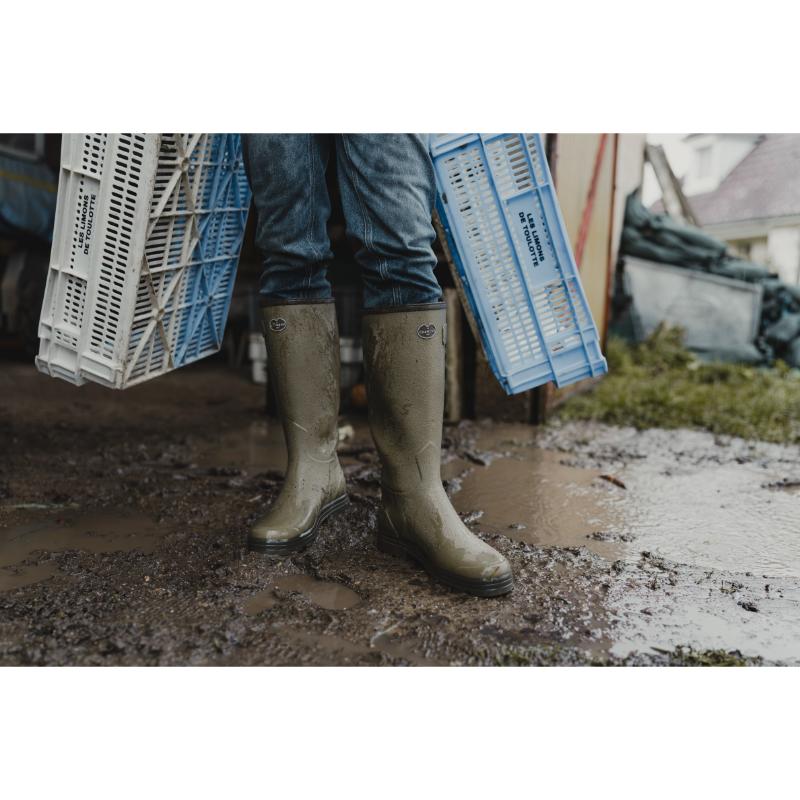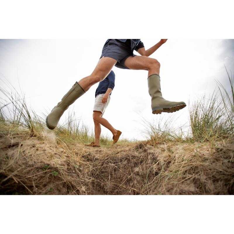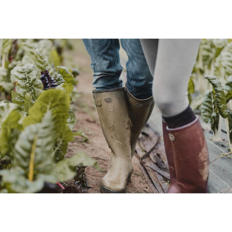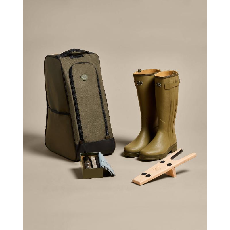 The Le Chameau Mens Chasseur Leather Lined Boot are the flag ship, leather lined wellington boot, famous by the name of "zip boot". The iconic sage green supple natural rubber upper is lined in luxuriously soft calf leather providing unparalleled comfort. The full length concealed side zip, with calf strap closure, ensures ease of entry for the wearer and an improved fit around the ankle. With a bi-density, all-terrain grip sole, resistant to abrasion, this boot is the ultimate; highly acclaimed worldwide.