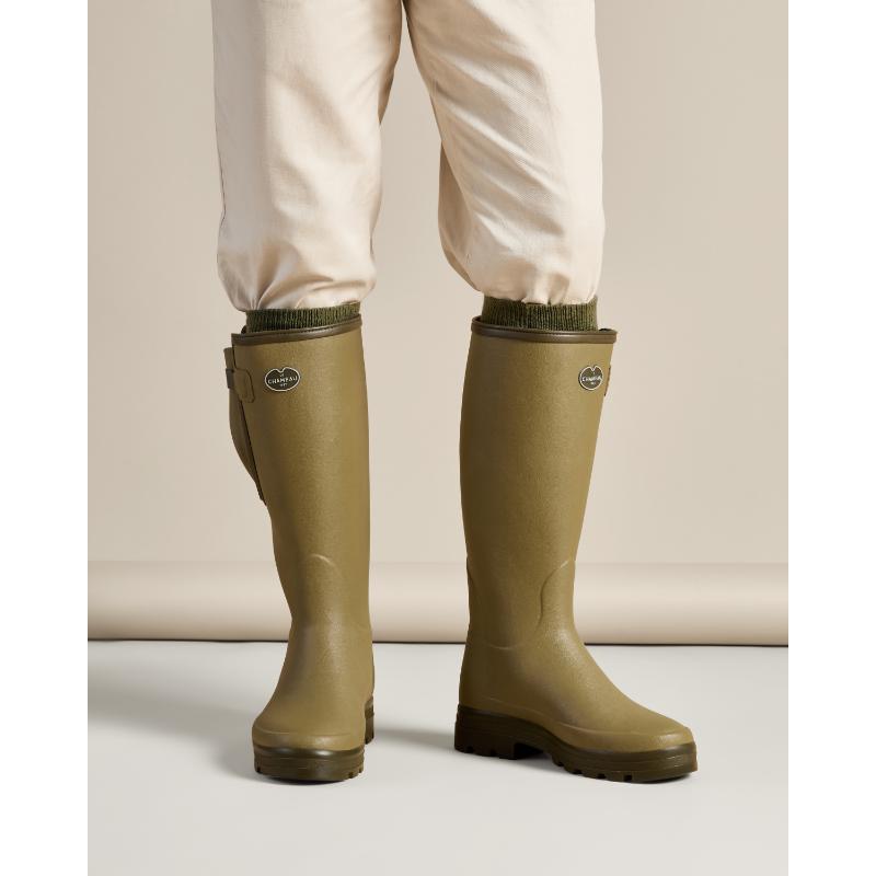The Le Chameau Mens Vierzonord Neoprene Lined Boots are best selling wellingtons; tried, tested and hugely popular! Made to an incredibly high standard, this natural rubber boot has an adjustable side gusset with strap and buckle to achieve a comfortable fit along with a shank reinforcement for better arch support. With a fully lined with a 3mm neoprene providing fantastic thermal insulating properties and a dual density all terrain grip sole, this is the perfect boot for cold weather.