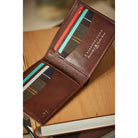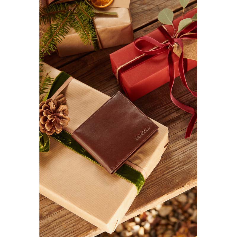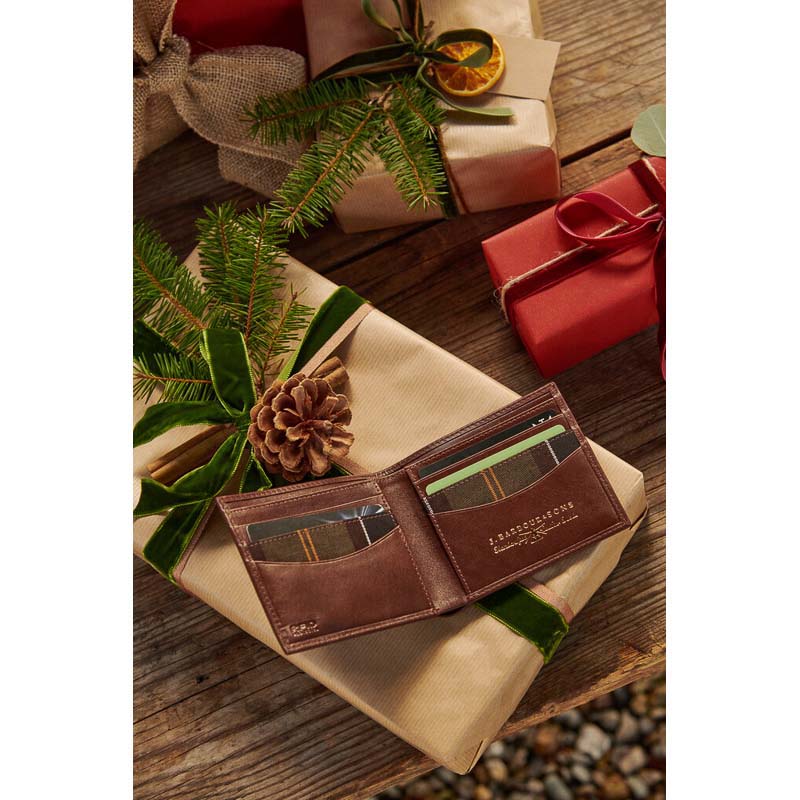 Barbour Colwell Leather Mens Billfold Wallet - Brown/Classic Tartan