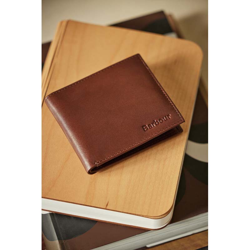 This Barbour Colwell Leather Mens Billfold Wallet is a stylish accessory crafted from 100% leather. With a slimline design and plenty of slots for notes and cards, this wallet offers a sophisticated storage solution that keeps your belongings secure. An embossed logo adds classic elegance to this wallet's timeless style.