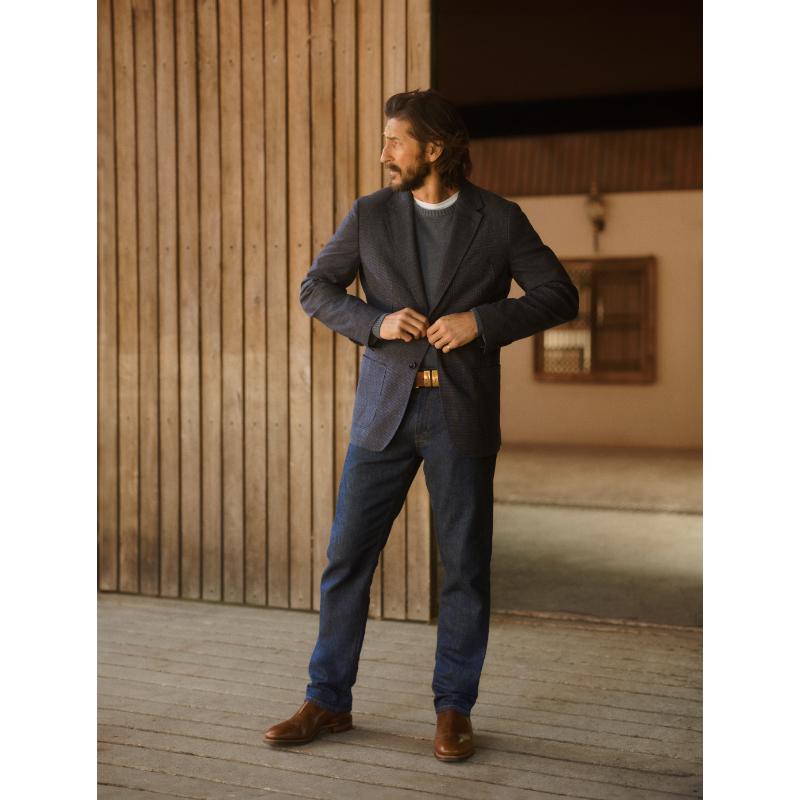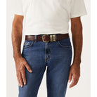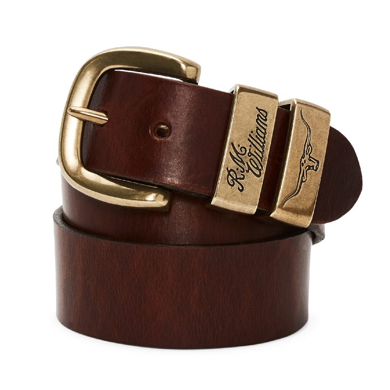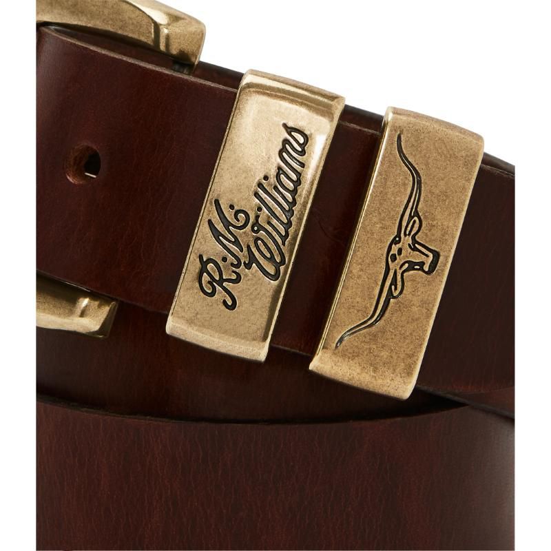 A simple belt can be the perfect finishing touch to your outfit and the R.M. Williams Drover 1 1/2" Mens Belt is the epitome of country style. Made in Australia from the highest quality vegetable tanned solid hide leather that is both soft yet durable, with a double keeper buckle and tonal matte hardware. Cut in a 1 1/2-inch width and neatly finished with longhorn embossing and R.M.'s classic branding.