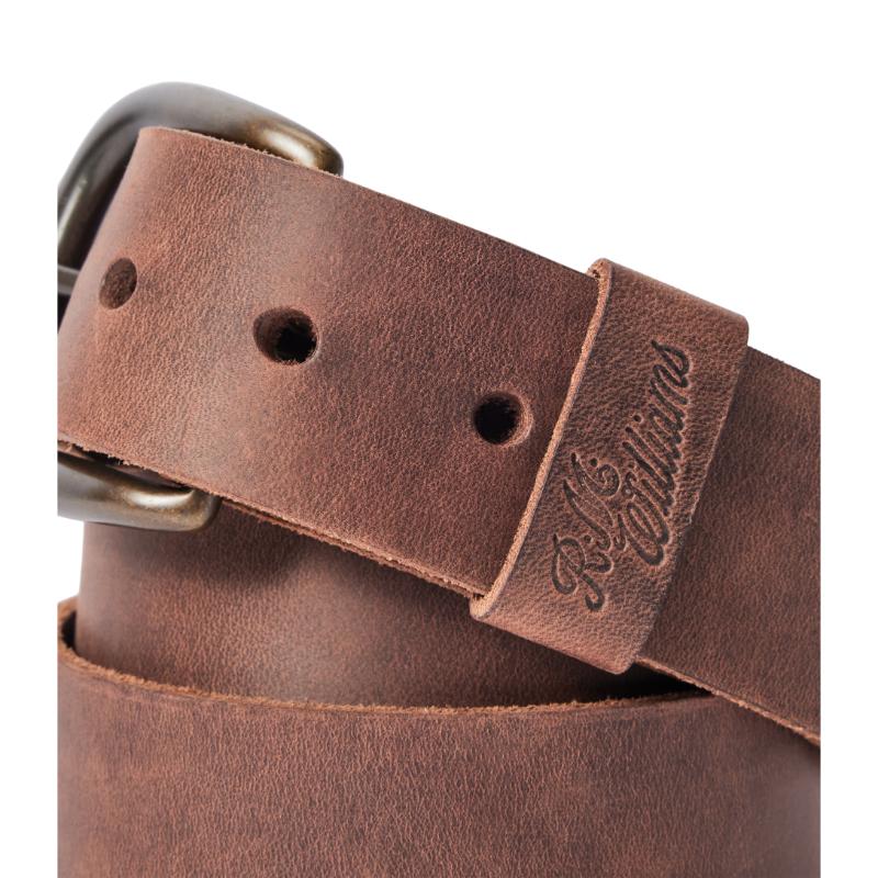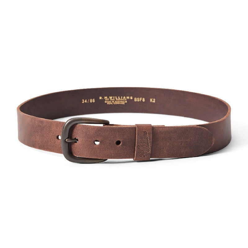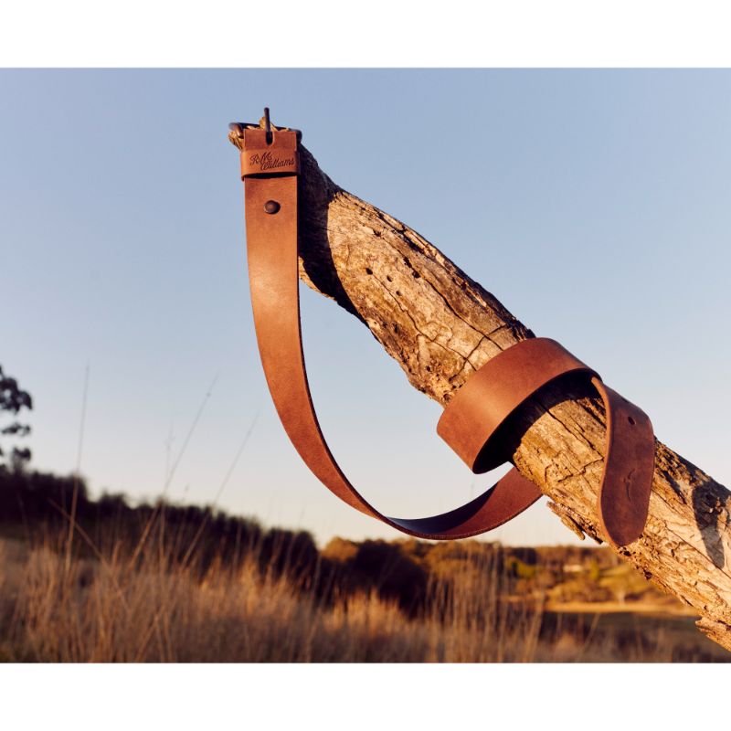 This R.M.Williams Goodwood Mens Belt is the perfect way to add an upscale touch to your wardrobe. Crafted from premium bovine vegetable tanned leather in a traditional design, it features a single leather keeper and antique brass hardware for a timeless look. With classic R.M.Williams branding on the leather keeper and tip, this elegant accessory is certain to add a classic touch to any ensemble.