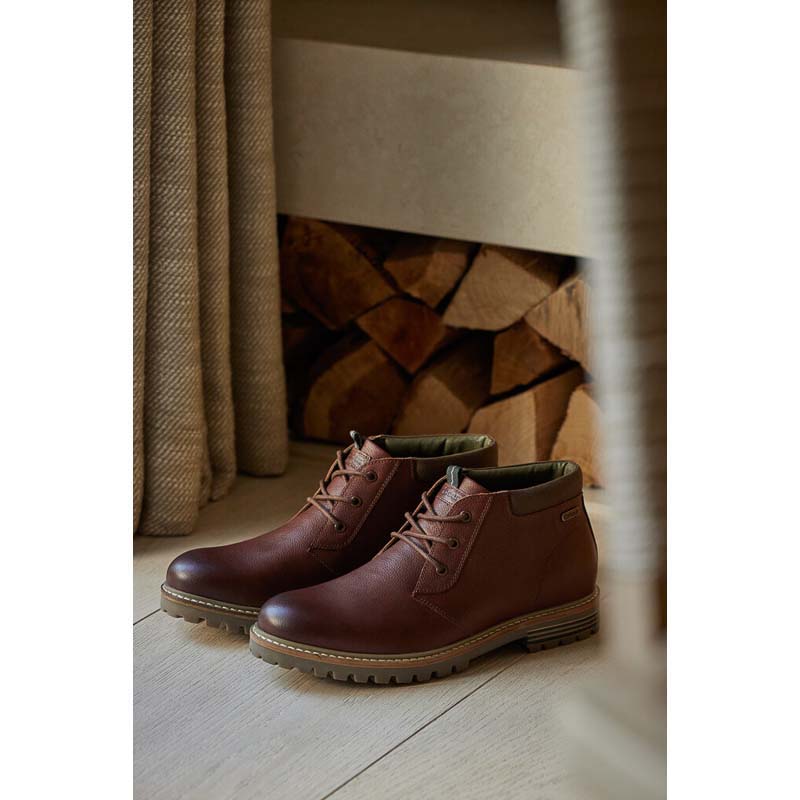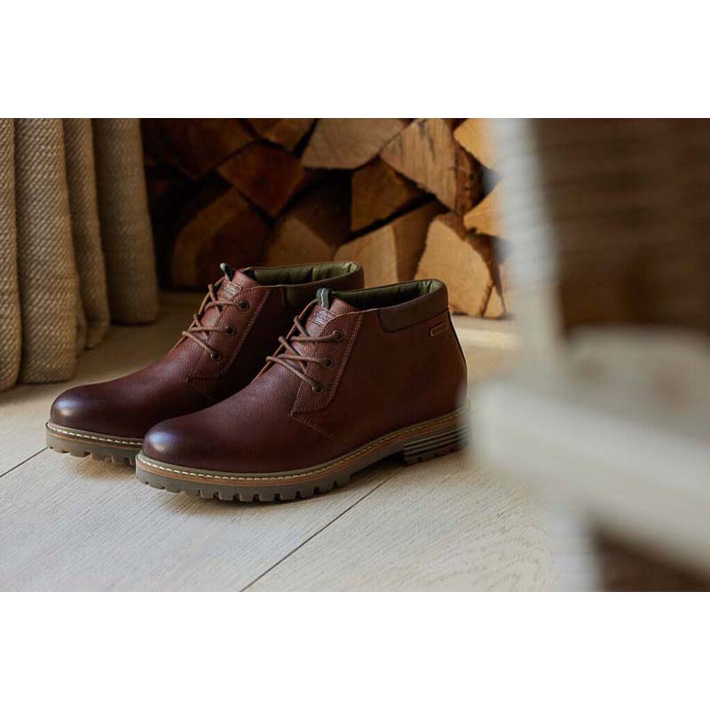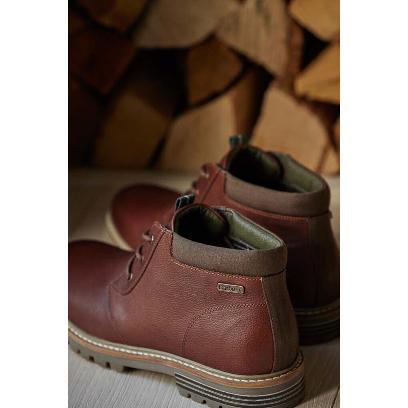 The Barbour Boulder Chukka Boot delivers unparalleled comfort and style. Crafted with a 3 eyelet design and Barbour canvas padded collar, these boots provide superior cushioning and a hint of sophistication. Their chunky cleated outsole and classic Barbour branding add an undeniable air of class. Keep your style game high with these smart and reliable boots.