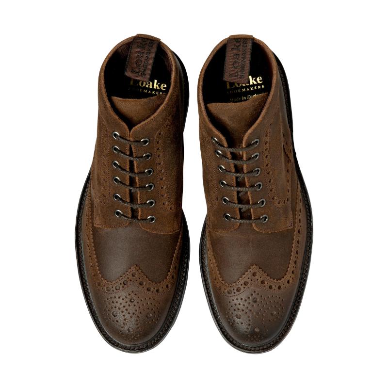 Loake Bude Mens Suede Brogue Boot - Brown Rough-Out Suede