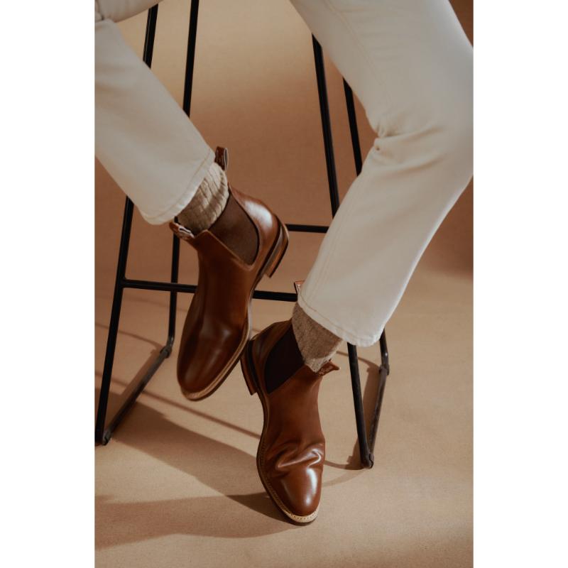 The R.M.Williams Comfort Craftsman Mens Boots really are the epitome of quality footwear and are one of the most popular styles of leather Chelsea boots you can buy. Crafted in Australia from pull-up leather that has been infused with oils to create not just a beautifully soft feel, but also a finish that is designed to rough up with each wear, creating a distressed effect that tells the unique story of your boots. Featuring the classic R.M. detailing of tonal boot pulls and elasticated panels, with a leather lined upper and comfort insole. There is a 3/4 welt comfort rubber outsole with a handsome chisel toe and flat block heel. These boots are a true investment in quality craftsmanship and will provide you with years of comfort and style.