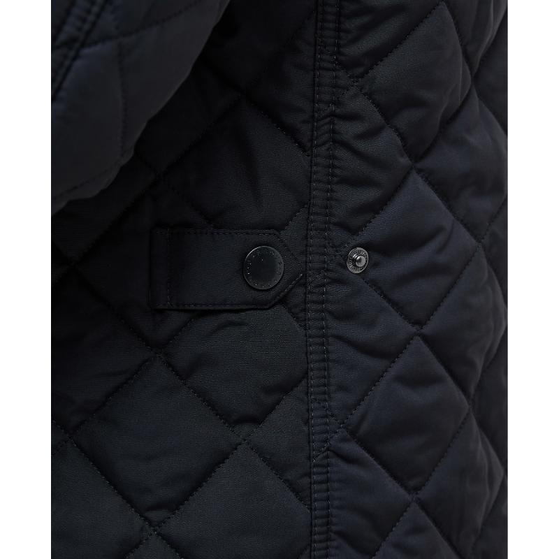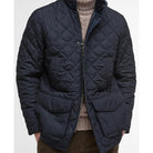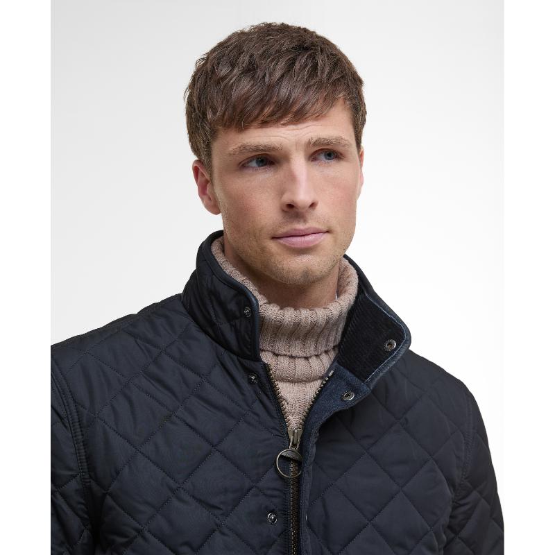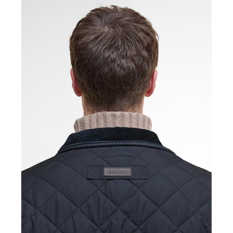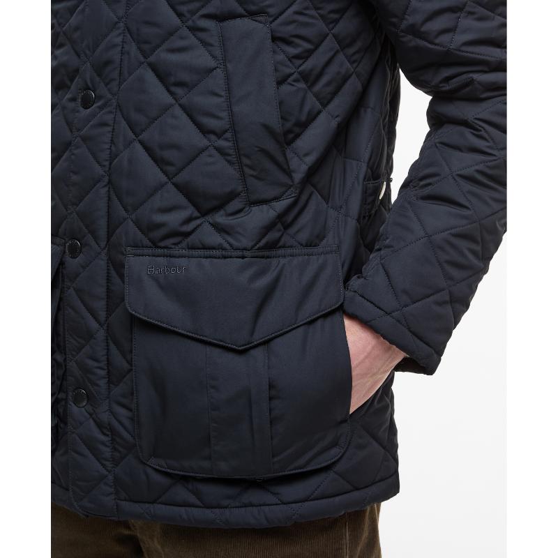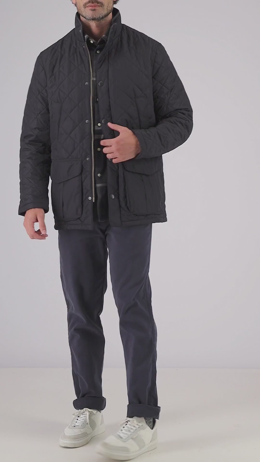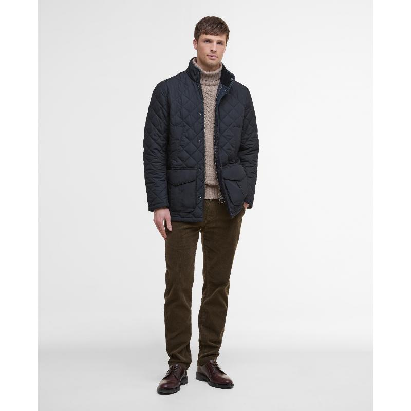 The Barbour Devon Quilted Mens Jacket is a leather trimmed quilt in Barbours iconic styling, with side entry lower patch pockets and ever so convenient hand warmer pockets. Ideal for casual days out and about adding a touch of Barbour's country styling to your outfit, perfectly suited for town or country. Finished with a traditional corduroy collar and the subtle Barbour branding gives you the mark of Barbour quality.