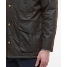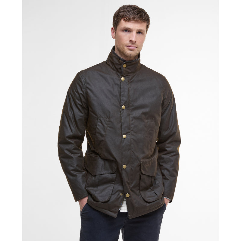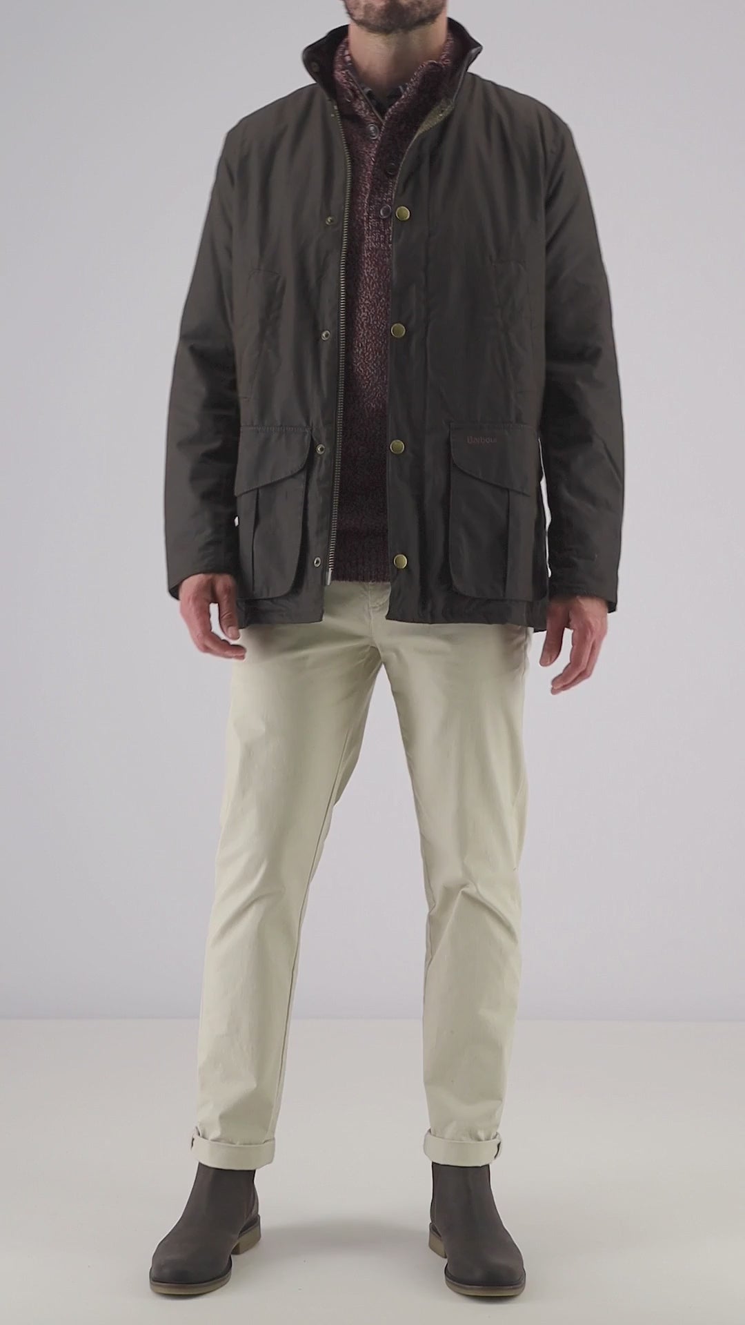 The Barbour Hereford Wax Jacket adopts the same contemporary styling as the hugely popular Devon Quilt. This effortless 6oz Sylkoil wax jacket with leather trims is lined with padded quilting and boasts hand warming pockets, as well as front patch pockets. Discrete Barbour branding features throughout. The Hereford is perfect for completing your Barbour country look as well as keeping you warm and comfortable during the colder months.