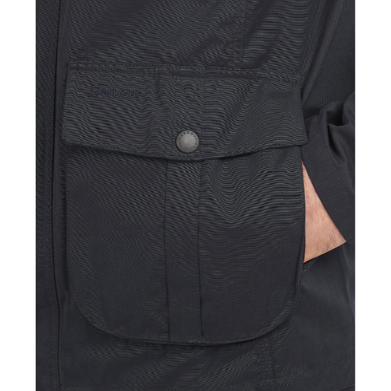The Barbour Sanderling Casual Mens Jacket is stylishly casual with a four box pocket design with side entry handwarmer pockets. Featuring a soft needlecord collar for ultimate comfort, branded zip with stud fastenings and a classic tartan lining.