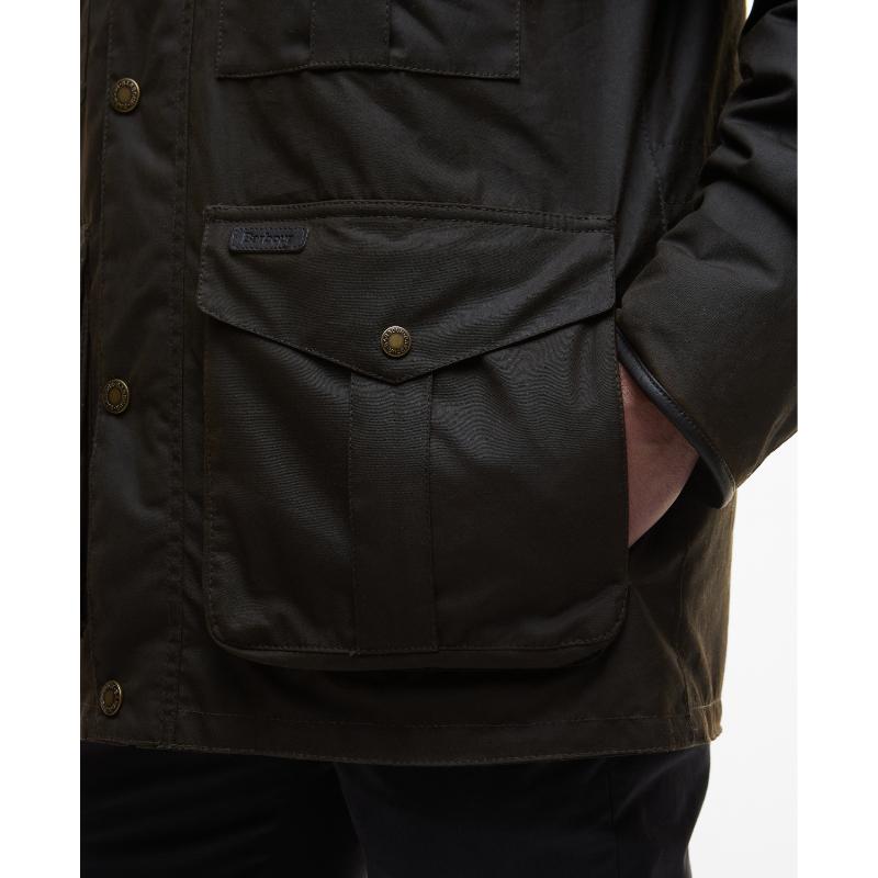 The Barbour Westward Men's Wax Jacket offers enduring quality with its 6oz waxed cotton construction, ensuring reliable weather resistance. Designed for comfort, it features a needlecord inner collar and a studded front placket for a secure fit. Practicality is enhanced by two spacious lower bellow pockets with side entry and two patch chest pockets, providing ample storage for essentials. This jacket seamlessly combines traditional Barbour craftsmanship with functional details, making it an excellent choice for both outdoor activities and everyday wear.