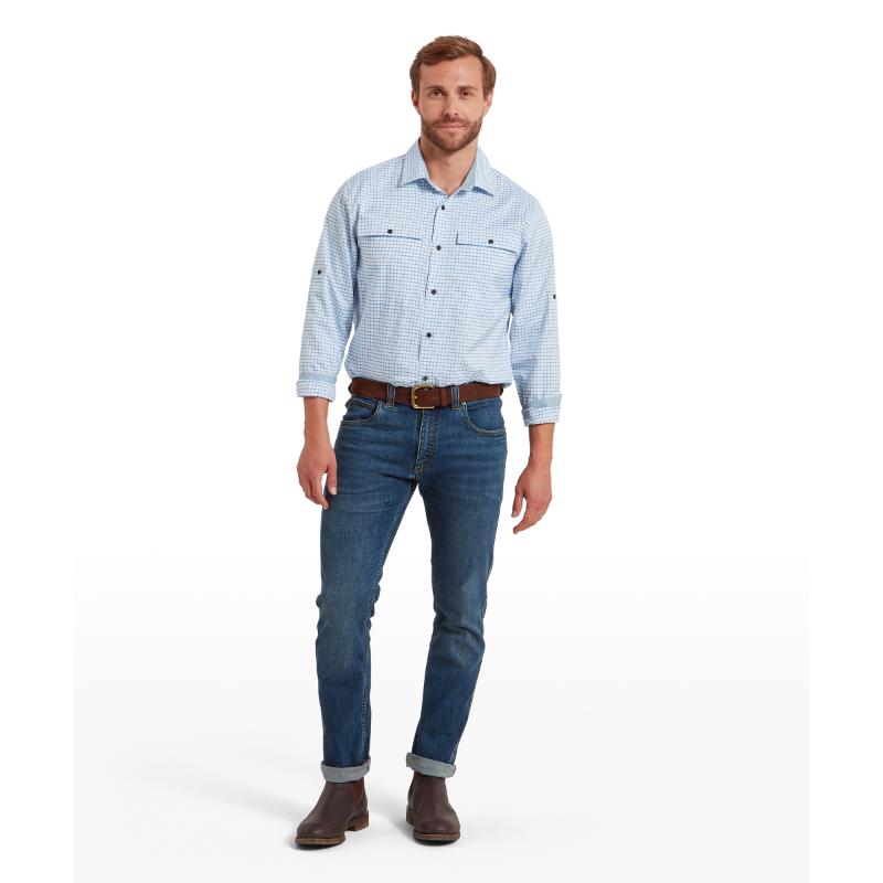 Schoffel Findhorn Technical Mens Fishing Shirt - Mykonos Blue Check