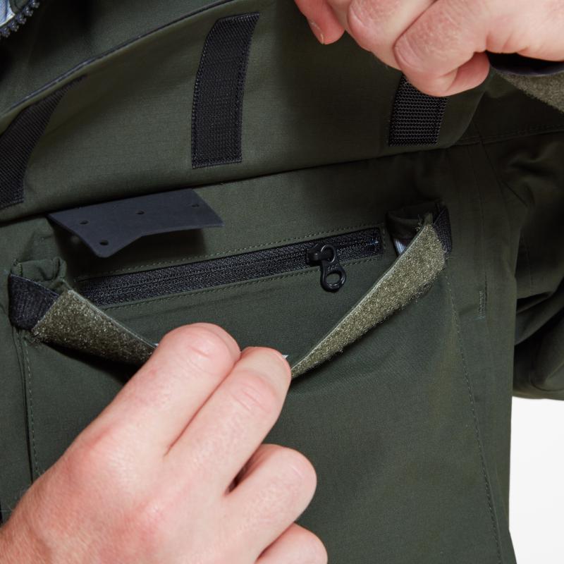 The Salar GORE-TEX Mens Waterproof Wading Jacket from Schoffel is an incredibly technical jacket designed to offer everything you could possibly need whilst on the water. The GORE-TEX 3-layer laminate with ripstop offers 100% waterproofing whilst being durable and fully breathable. Combined with a three-point adjustable packaway storm hood, adjustable watertight cuffs and two zipped microfleece side hand warmer pockets with drainage eyelets, you will have complete protection from the elements. The large top-access chest pockets feature an elasticated gusset for maximum storage, whilst the D-ring for tool attachment and Hypalon port for your zinger attachment are very easily accessible. There is also a hook and loop fastener fly patch pad, wading belt loops, reinforced net D-ring and an internal zip pocket with clear face for your mobile phone. Schoffel really have thought of everything with this incredibly technical wading jacket!