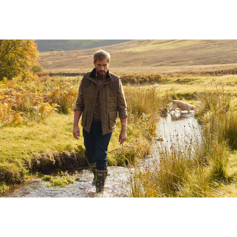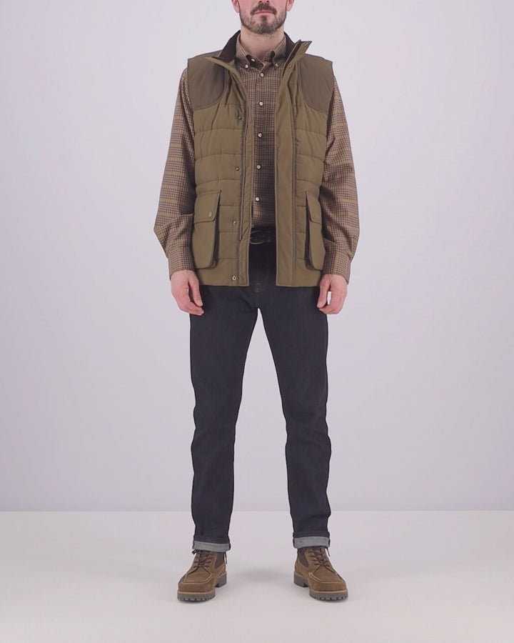 The Barbour Bradford Gilet is a padded, but not at all bulky, baffle quilt gilet with contrasting shoulder patches for a traditional country look. Featuring studded patch pockets, which have side entry too for added comfort.