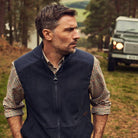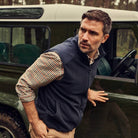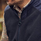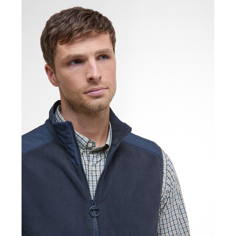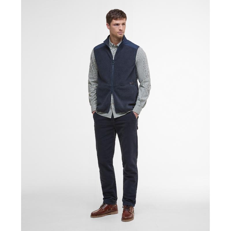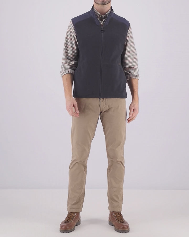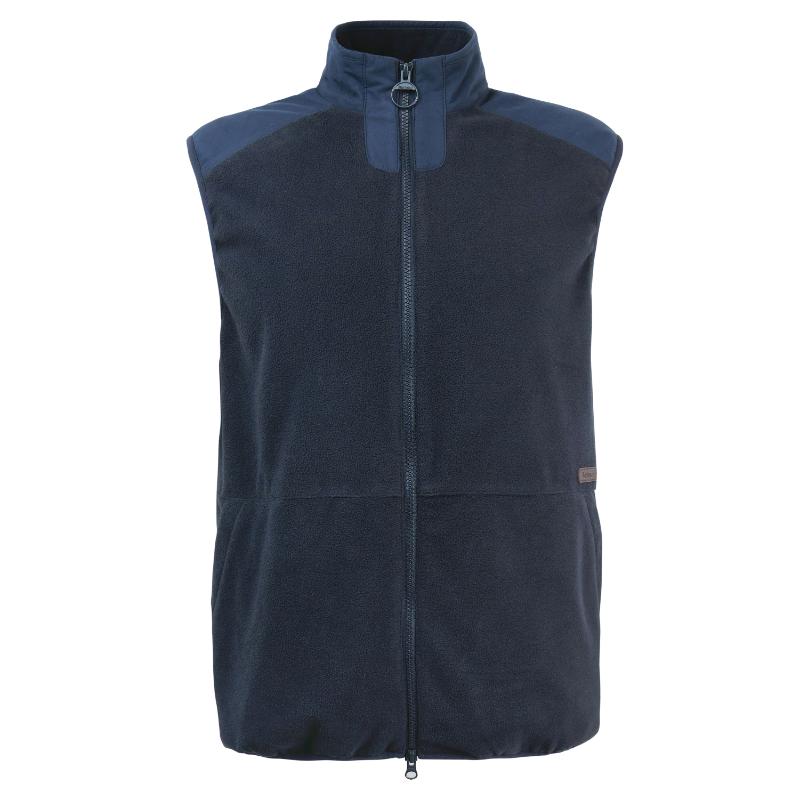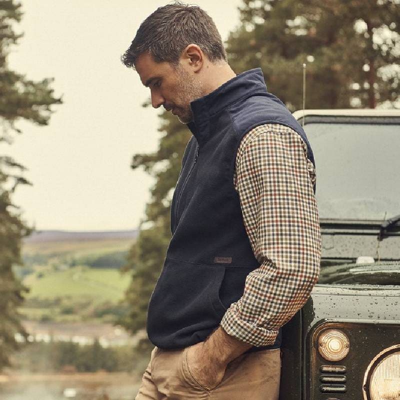 Stay warm and stylish with this Barbour Country Mens Fleece Gilet. Crafted from a cosy fleece material with a contrast collar and yoke, it features waist seam detail, angled welt pockets, and a bound hem. Decorated with a classic Barbour brown leather badge to the left seam and centre back, this fleece gilet pairs perfectly with a shirt for a classic country look.