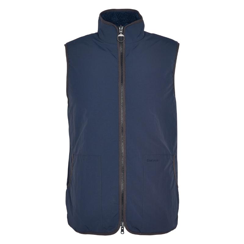 The Barbour Reversible Fleece Mens Gilet offers versatility and warmth, with a two-in-one design featuring a cozy fleece and tonal fabric. The Barbour plaque and signature ring-pull add iconic details. Perfect for any style, this gilet guarantees optimal warmth.
