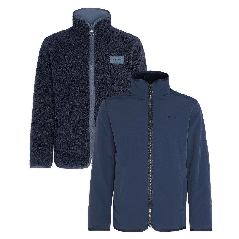 The Barbour Reversible Mens Fleece Jacket offers versatile style with its dual-sided design: a dark, high-pile fleece side and a lighter microfibre side. Expertly tailored for a refined fit, it features zipped inner pockets and welt pockets for secure storage. Herringbone binding on the neck and cuffs, along with Barbour embroidery on both sides, adds classic detailing. Machine washable at 30°C, this jacket combines practicality with timeless design, making it ideal for layering and everyday use.