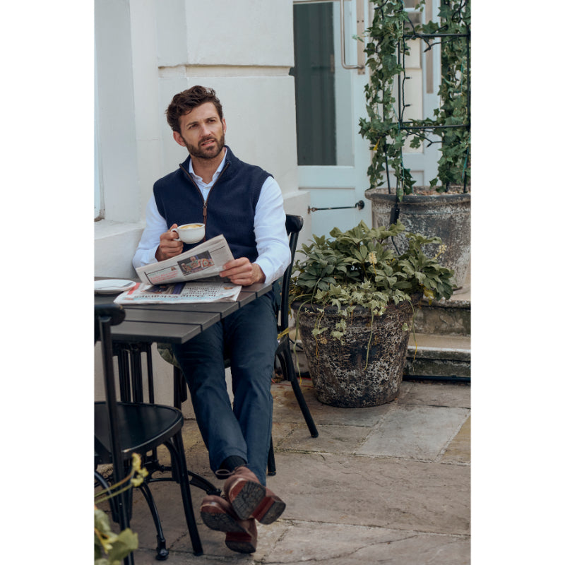 The Dubarry Upperwood Mens Wool Blend Gilet is a warm, soft and breathable garment, crafted from ethically sourced materials. With a hint of nylon to enhance its durability, and rayon for a silk-like aesthetic, this sleeveless gem features a full length front zip and faux suede piping throughout. It would work perfectly as a top layer over a tattersall shirt or a mid layer for extra warmth beneath your favourite shooting coat. Hand washable, but can also be dry cleaned.